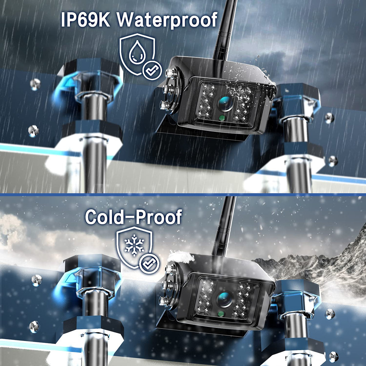 Q: Is the ZEROXCLUB backup camera system weatherproof?A: Yes, the ZEROXCLUB backup camera system is IP69K rated, making it waterproof and capable of functioning in various weather conditions, including rain, snow, and fog.