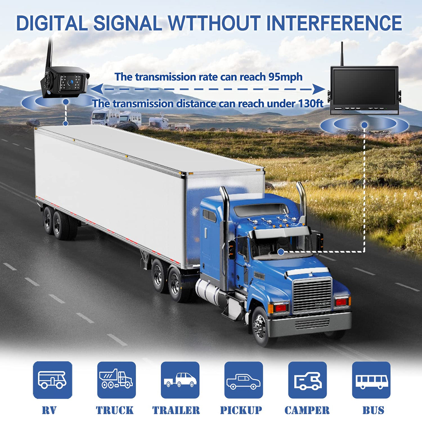 Q: What vehicles are compatible with the ZEROXCLUB 1080P Wireless Backup Camera System?A: The ZEROXCLUB 1080P Wireless Backup Camera System is compatible with a wide variety of vehicles that operate on 12-24V DC power, including RVs, trucks, trailers, campers, 5th wheels, buses, and motorhomes.