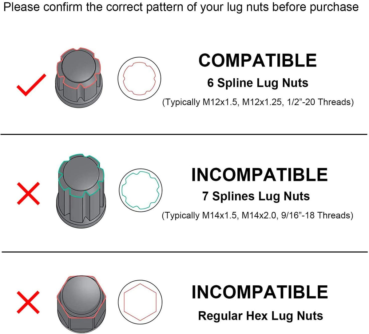 Q: How do I ensure compatibility with my lug nuts?A: To ensure compatibility, verify that the diameter of your 6 spline lug nut is smaller than 17.6mm before using the ZHTEAPR socket.