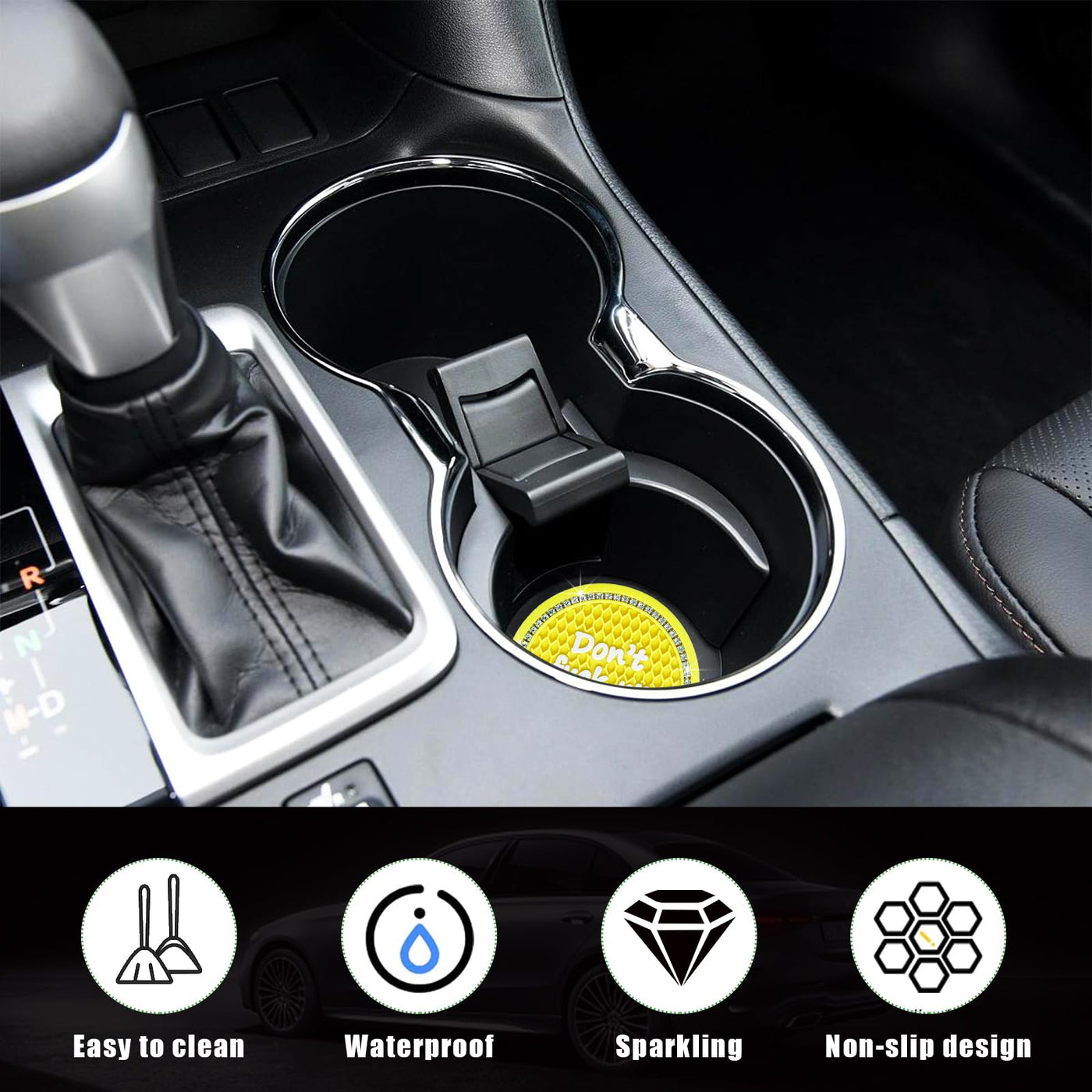 Specifications: Material: PVC Weight: 38 g Diameter: 2.75 inches Quantity: 2 PCS Color: Pink/ Black/ Purple/ Red/ Orange/ Rose Red/ Yellow/ Blue/ Light Blue/ Mint Green/ Dark Purple Fit Type: Universal Fit Why do you need this car cup holder cover? -It can prevent cup holder from getting dirty with dust, crumbs or drinks. -Reduces the friction on the water cup holder and won't scratch the bottom of the water cup holder. -Installation is very flexible and convenient, you can pick up and put down at any time. -The logo is not easy to fade and has a long service life. Warm Notes: -The product is made of PVC, please keep it away from fire sources. -To prevent the rhinestone from falling off, please avoid rinsing the product directly with water.