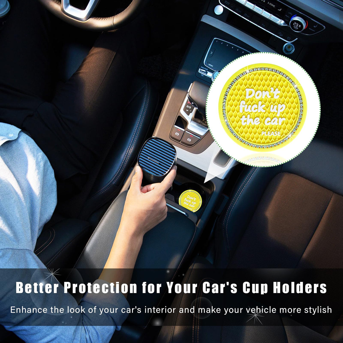 Ziciner 2 Pack Bling Car Cup Holder Coaster, 2.75 Inch Anti-Slip Auto Insert Coaster, Crystal Car Drink Mat Perfect For Women Gi