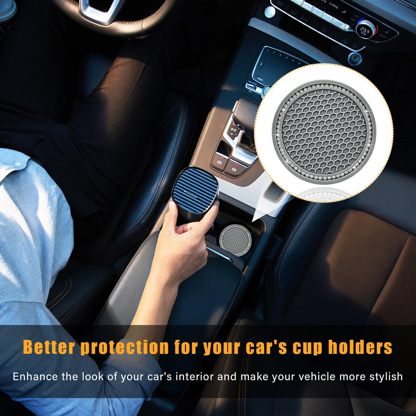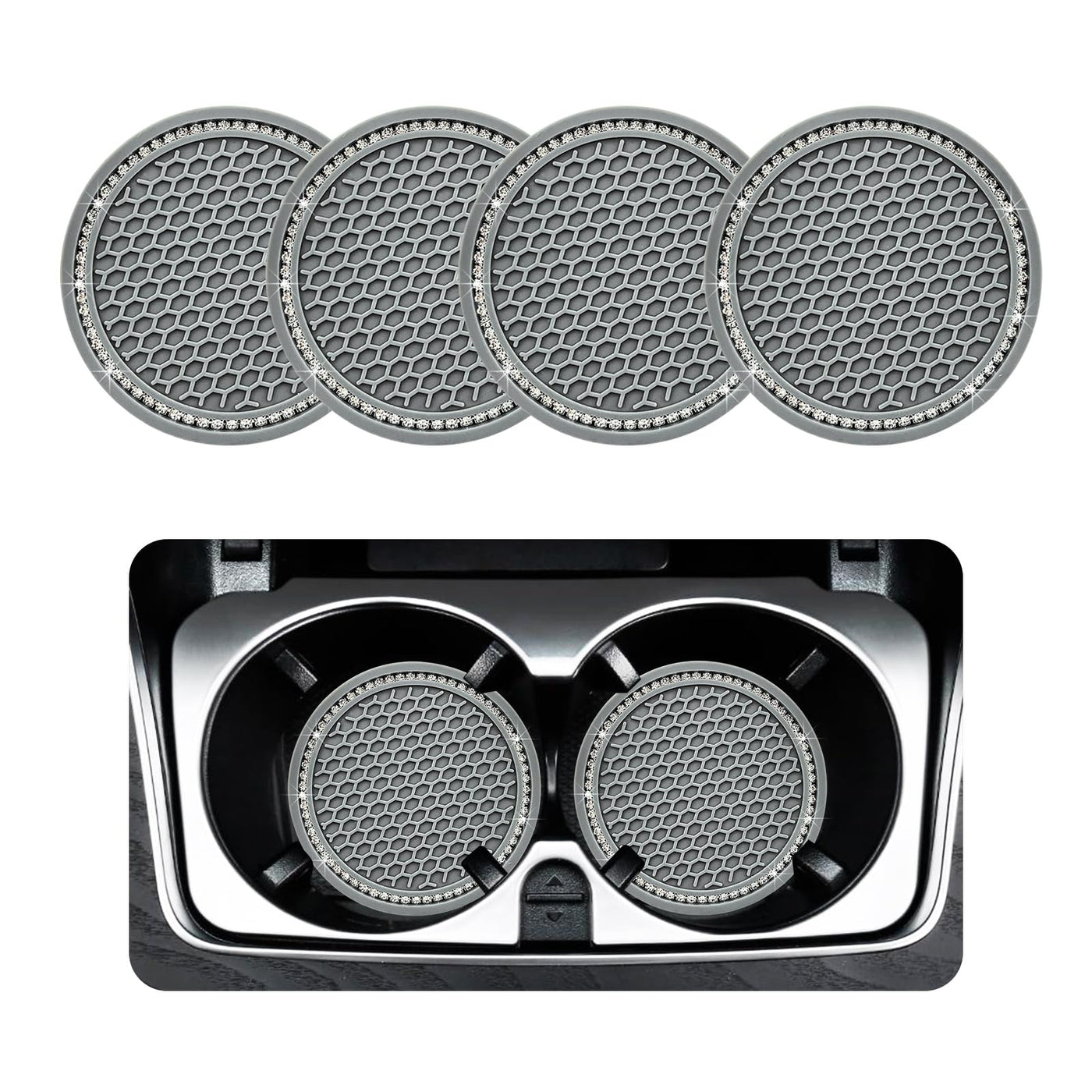 Ziciner 4 Pack Bling Car Cup Coaster, Crystal Soft Rubber Cup Holder Insert Coaster, Anti-Slip Rhinestone Drink Cup Mat, Univers