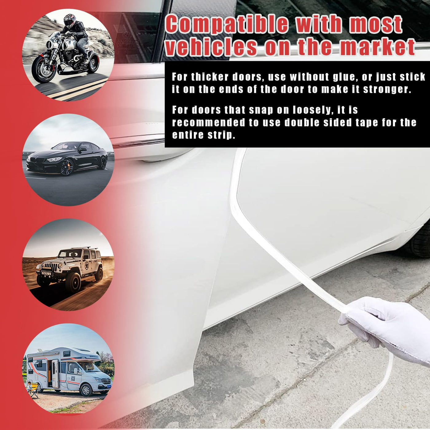 Specifications: Material: PVC Color: Black/ White/ Transparent/ Blue/ Red/ Yellow/ Transparent White Size: 16ft Quantity: 1Pcs Product Weight: 0.73lb Fit Type: Universal Fit Why do you need this product? -Strong protection performance: Car door side guards can protect the car side door when opening the door by other vehicles collision or scrape, to prevent the door is scratched, deformation or serious damage. -Save maintenance costs: The use of car door bumper strips will greatly extend the service life of your car doors and also reduce your repair costs. -Safety guarantee: The installation of adhesive-free anti-bumping strips can increase the thickness of the door, thus enhancing the resistance of the door to external forces and achieving the purpose of protecting the safety of the driver and the vehicle. Service Guarantee: - We strive to provide the best products and customer service! If you have any questions, free to contact us, we will solve it at once!