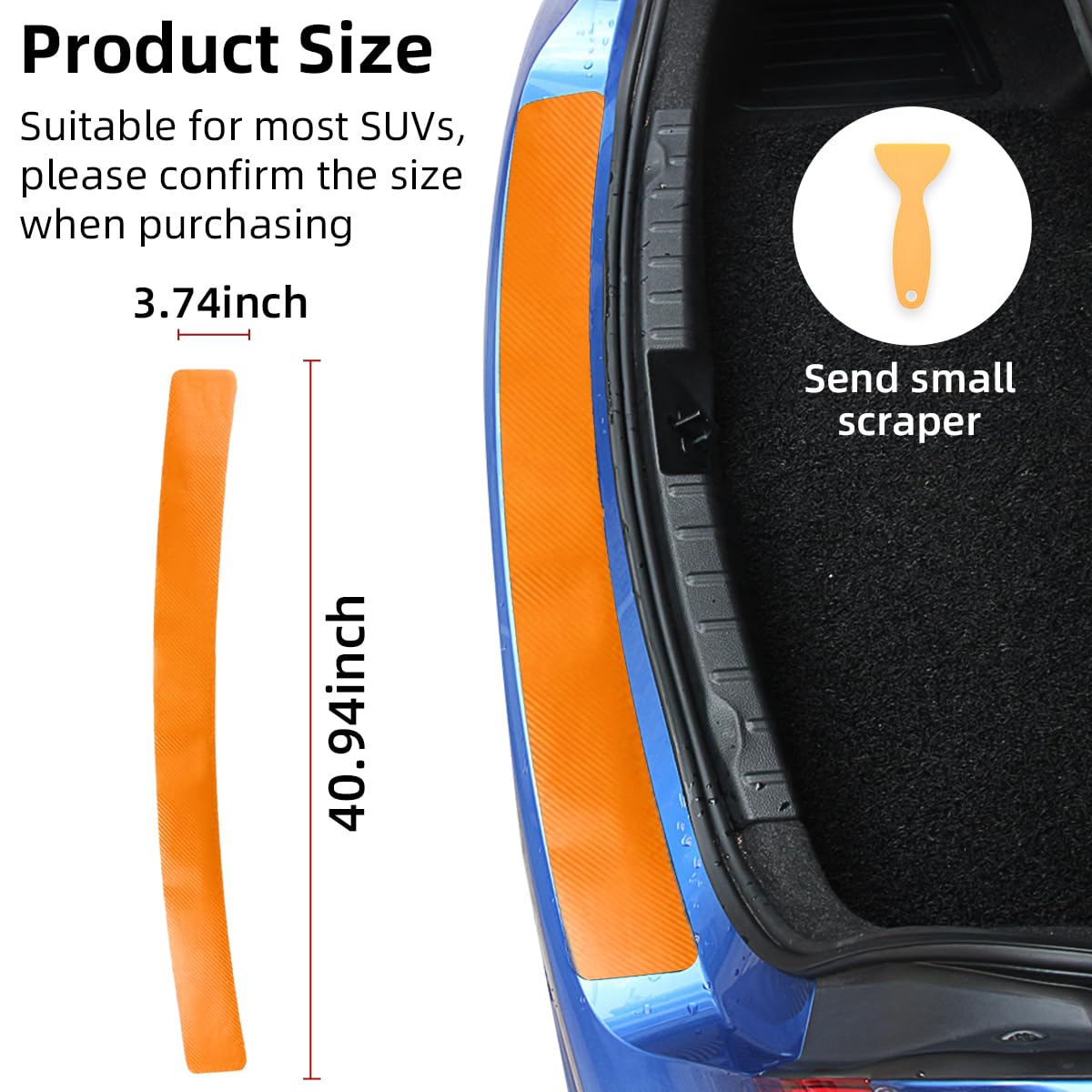 Description: Specifications: Material: PVC Color: Black/ Red/Light Blue/Dark Blue/Silver Gray/Orange/Transparent Size: 41/35.4 3.75 inches Quantity: 1Pcs Product Weight: 29.8/24g Package Include: 1 Rear Bumper Protector, 1 Scraper Fit Type: Universal Fit How this product can help you? -It can protect the surface of the car trunk door sill. The trunk door is one of the easily damaged parts of the vehicle and is often susceptible to damage from wear and tear, scratches and impacts. By installing protection strips, you can effectively extend the service life of the trunk door and reduce the workload and cost of repair and maintenance. -Make the appearance of the vehicle more beautiful. While preventing the car from being scratched, the trunk protection strip can also enhance the aesthetic appearance of the vehicle and improve the overall sense of class of the vehicle. -Increase the value of the vehicle. The trunk protection strip can avoid damage and wear on the surface of the trunk door, thus ensuring the quality of the vehicle while also increasing the vehicle's value retention rate and trade value. Warm Tip: -Do not paste in extremely cold conditions, try to paste indoors because the cold weather in winter will reduce the viscosity of the backing, which is a problem caused by the natural environment, not the problem of the product tape.
