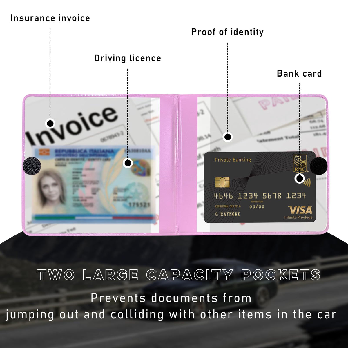 Product Information: Material: PVC Style: Glossy Color: Red, Blue, Purple, Pink, Orange, Silver, Black, White Quantity: 1, 2, 4 PCS Weight: 0.13, 0.26, 0.52 lb Size: 5.2 4.7 inches Fit Type: Universal Fit Why do you need the car document holder? -Made of waterproof and durable material. -Convenient to store documents or cards. -Keeping your car neat and clean. -Designed with small size, does not take up space. -It feels soft and comfortable. -Thoughtful gift for family and friends. Warm tips: -Please keep the card package away from the fire source to avoid damaging your documents. -Display may vary slightly due to different lighting and angles of photography. However, we guarantee that the style of the product is absolutely identical to the picture.