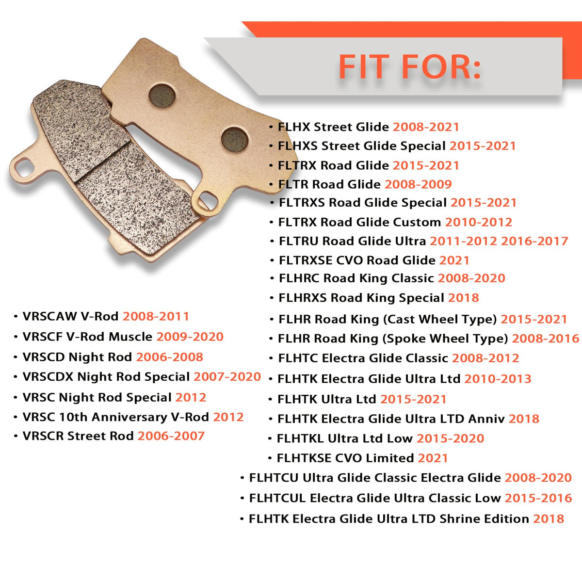 Zicoo Sintered Front & Rear Brake Pads For Harley Davidson Flhr Road King Flhx Street Glide Road Glide Flhtcu Ultra Classic Electra Glide Tri Glide Fltrx Limited Night Rod