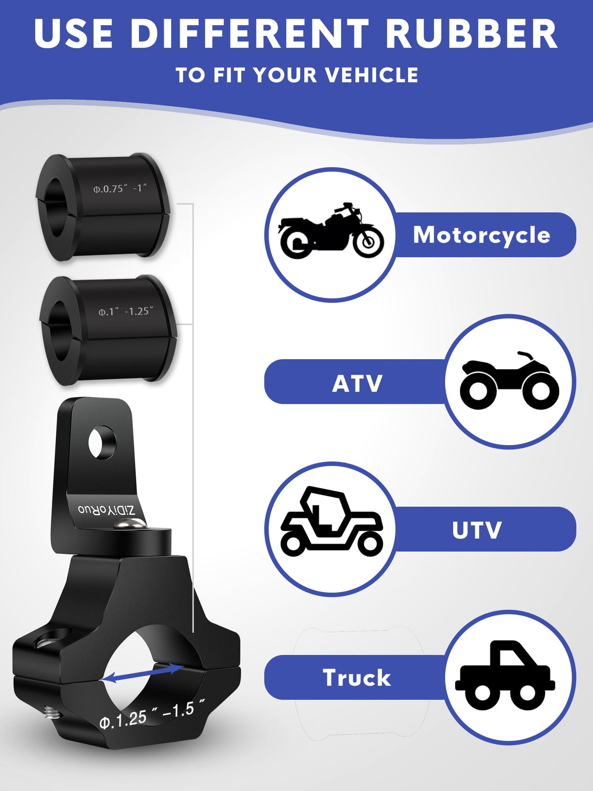 Zidiyoruo Light Bar Mount For Atv- 360 Solid Aluminum Alloy Bracket For Fog Led And Driving Lights. Fits 0.75''-1.5'' Bars, Set
