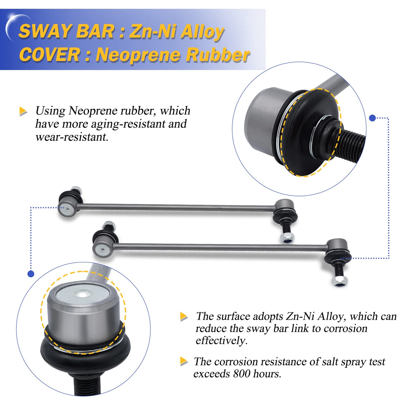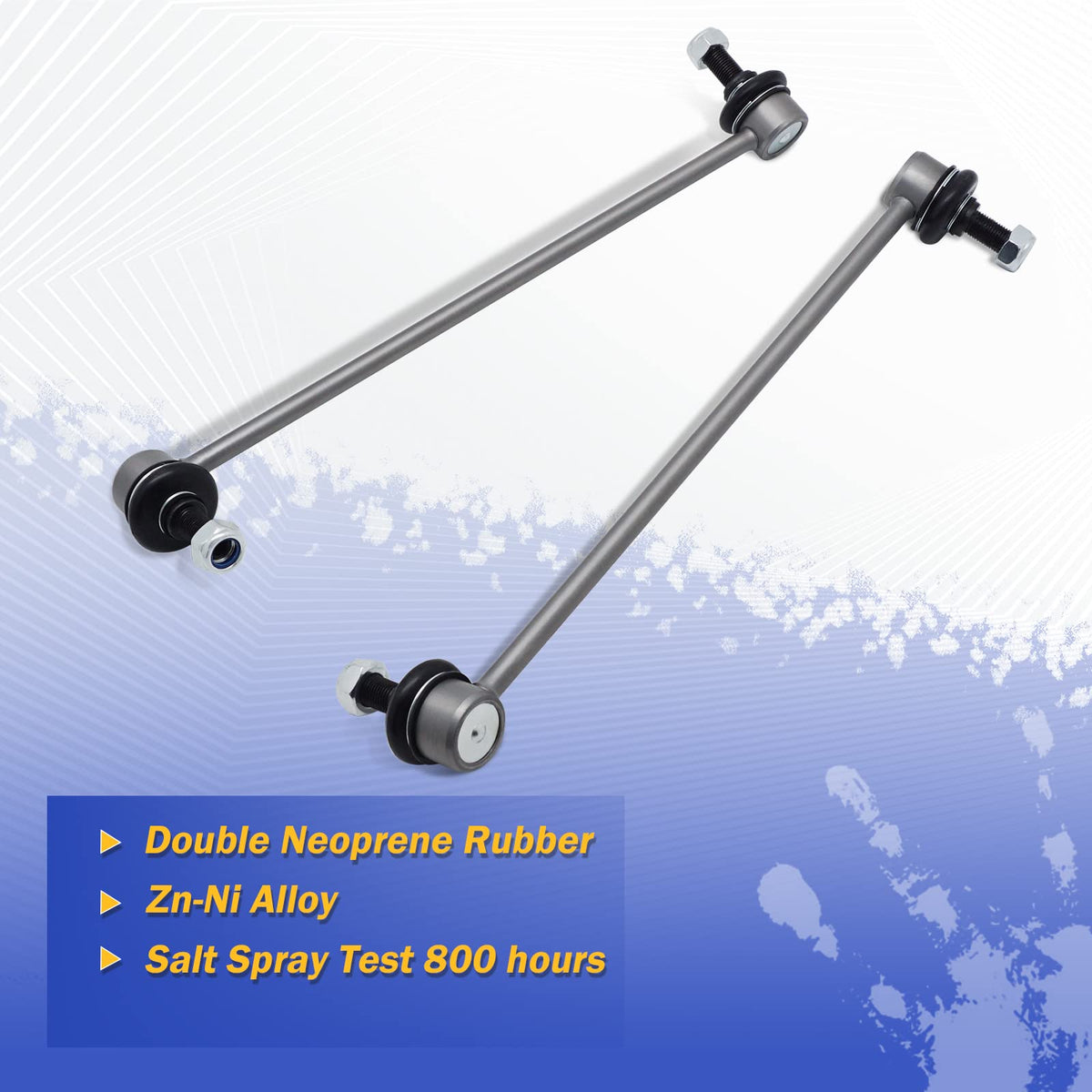 Q: How do I maintain the sway bar links for longevity?A: To maintain the longevity of your sway bar links, ensure they are properly installed and periodically check for signs of wear or damage. Regular inspections can help prevent issues and ensure optimal performance.
