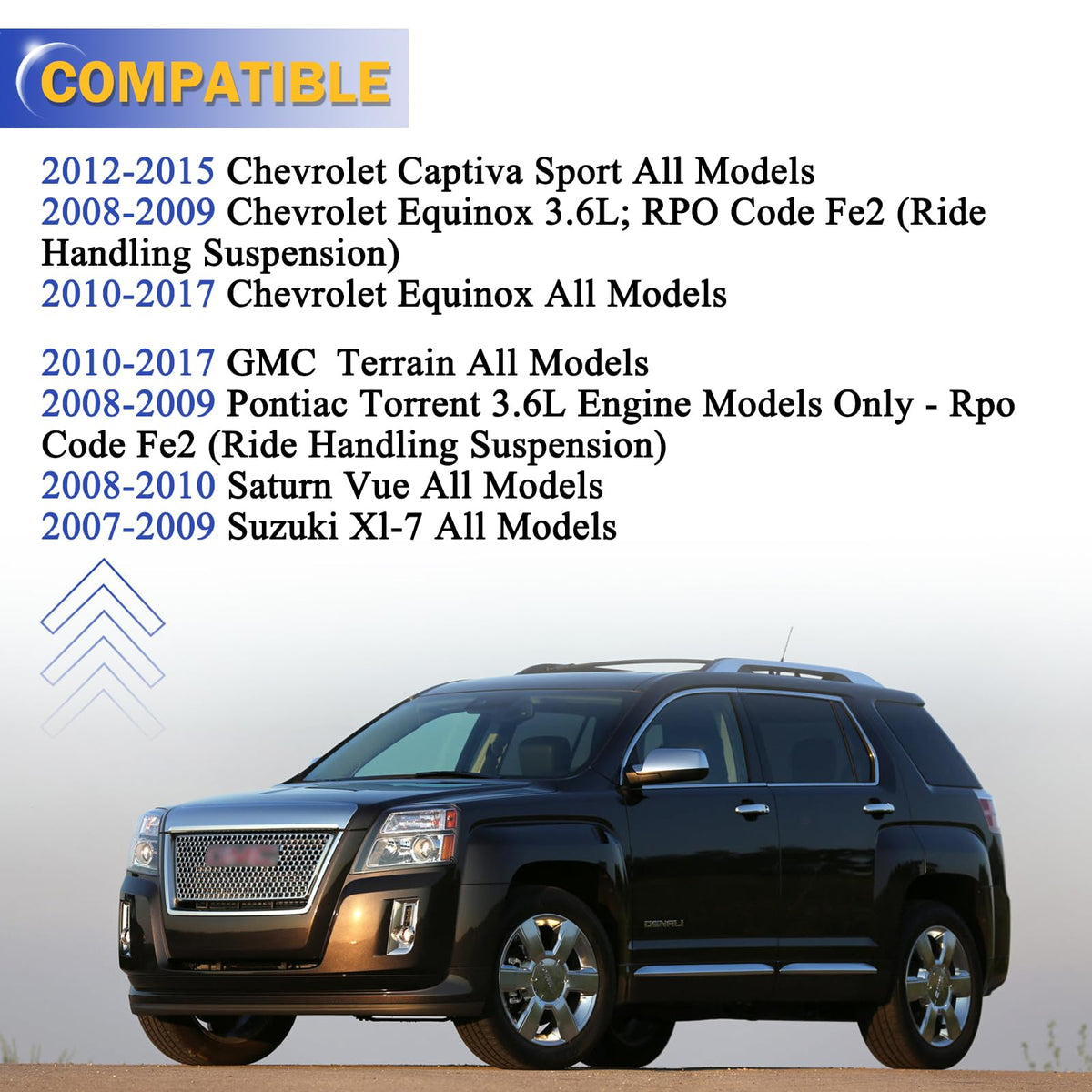 Manufacturer Part Number: K750188 & K750189 Fit For The Following Vehicles: For Chevy Captiva Sport 2012-2015 All Models For Chevy Equinox 2008-2009 3.6L For Chevy Equinox 2010-2017 All Models For Gmc Terrain 2010-2017 All Models For Pontiac Torrent 2008-2009 3.6L For Saturn Vue 2008-2010 All Models For Suzuki Xl-7 2007-2009 All Models