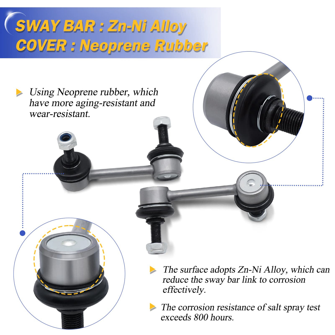 • Q: What warranty is offered for the Zinc-Nickel Alloy Stabilizer Sway Bar Links? A: These sway bar links come with a 12-month warranty, offering peace of mind regarding product quality and performance. Should you encounter any issues, customer service is available for assistance.