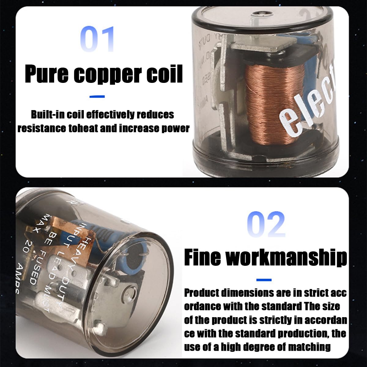 Specifications: Material: Copper + Pc Color: Transparent Size: 2.3 X 1.4 X 1.3 Inches Voltage: 12V Package Include: 2 X Car Flasher Relay