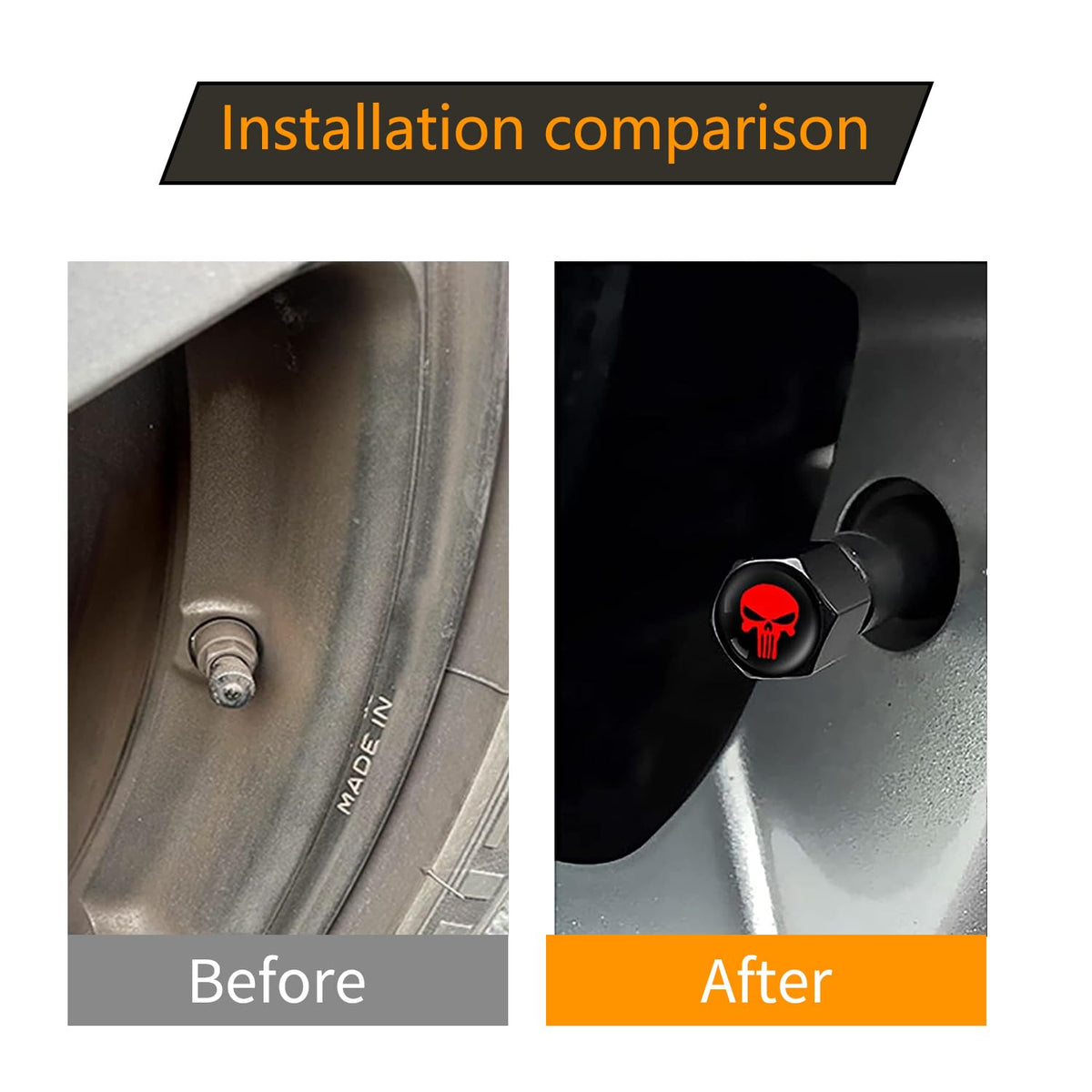 Q: How do I install the ZKFAR Skull Tire Valve Caps?A: Installation is super convenient. Each pack comes with four caps, and you can easily install them by hand without any extra tools. The caps feature a rotating thread structure to prevent air leakage and ensure stability while driving.