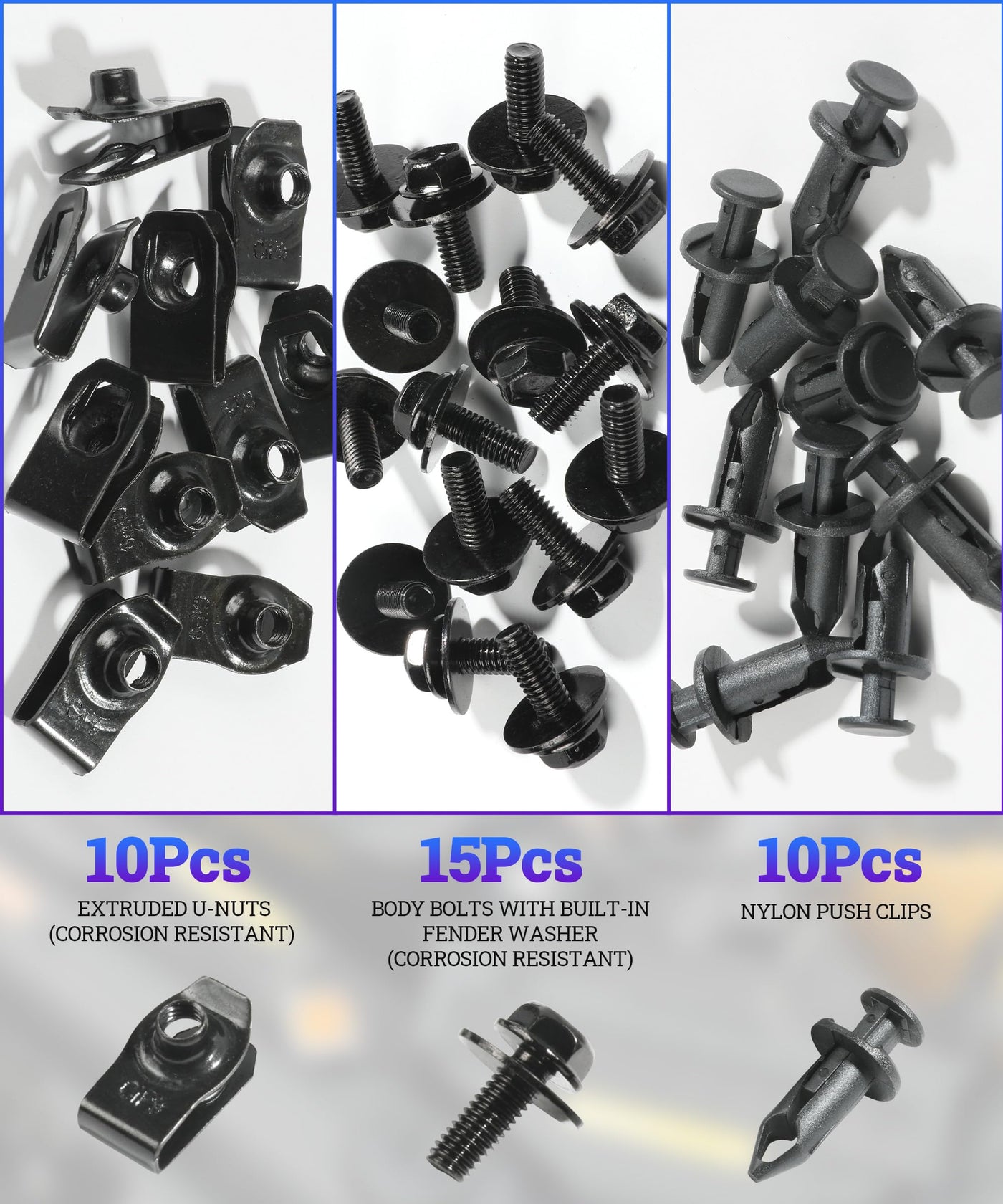 Zlirfy 35Pcs Engine Under Cover Splash Shield Guard Body Bolts Screws,Bumper Fender Liner Push Retainer Fastener Rivet Clips,Bumper Clips Extruded U-Nuts Kit,Replacement For G35 G37 Fx35 Fx45