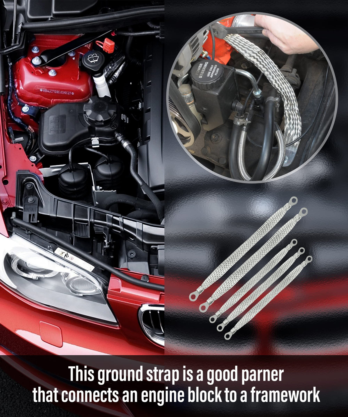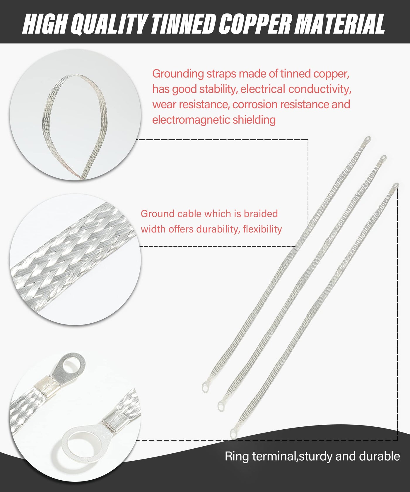 Zlirfy Automotive Ground Strap Kit,Universal Flat Braided Copper Ground Strap,3Pcs 10'' X 1/2'' And 2Pcs 13'' X 1/2'' Car Ground