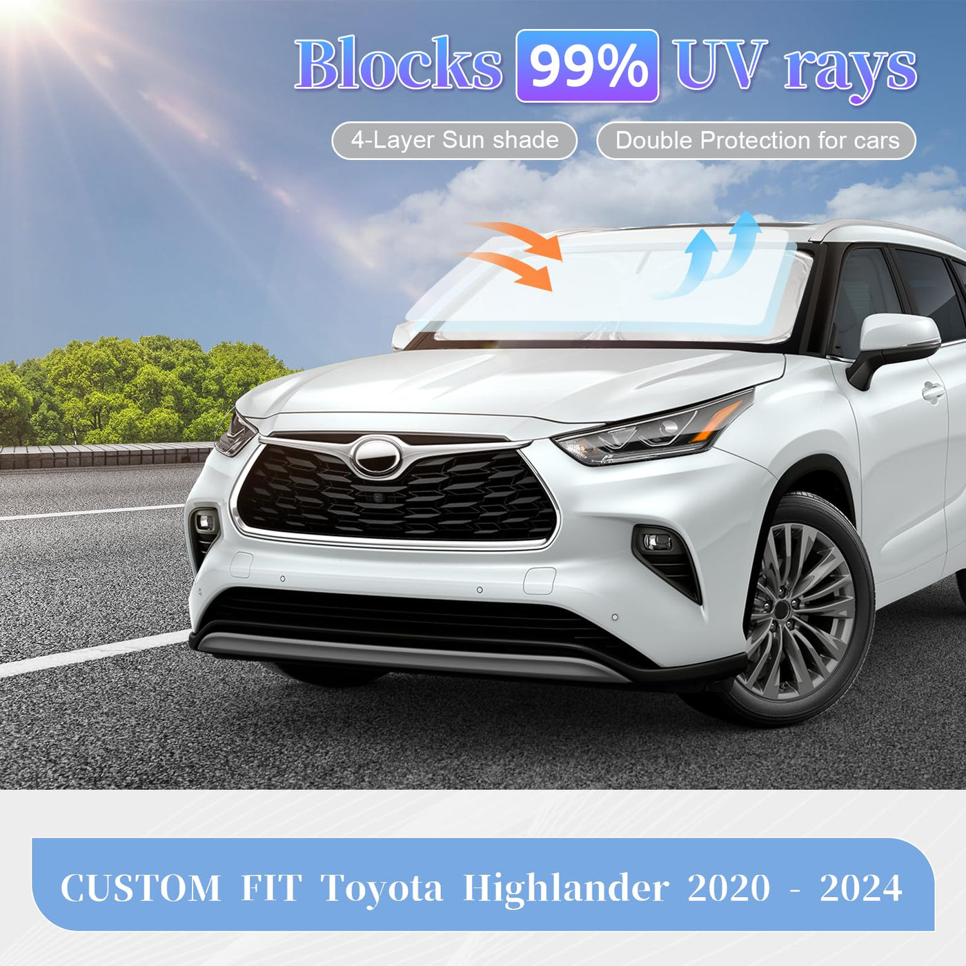 Zoibv For Toyota Highlander 2020-2024 2025 Sun Shade Sunshade Windshield Cover, 4-Layer Front Window Shade Custom Fit Highlander
