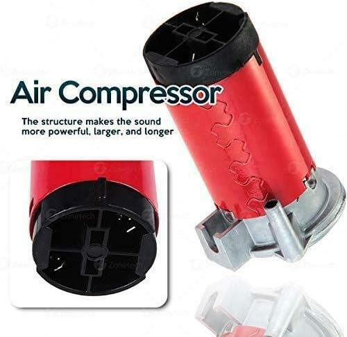 Q: What materials are used in the construction of the Zone Tech Air Horn?A: The Zone Tech Air Horn is made from premium quality materials designed for maximum strength and durability, ensuring long-lasting usage and weather resistance.