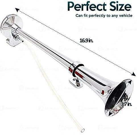 Zone Tech 12V Single Trumpet Air Horn - Premium Quality Silver Single Trumpet Air Horn Relay Included Chrome + Compressor Super Loud 150db for Truck, Train Lorry, Boat and SUV (2-Pack)