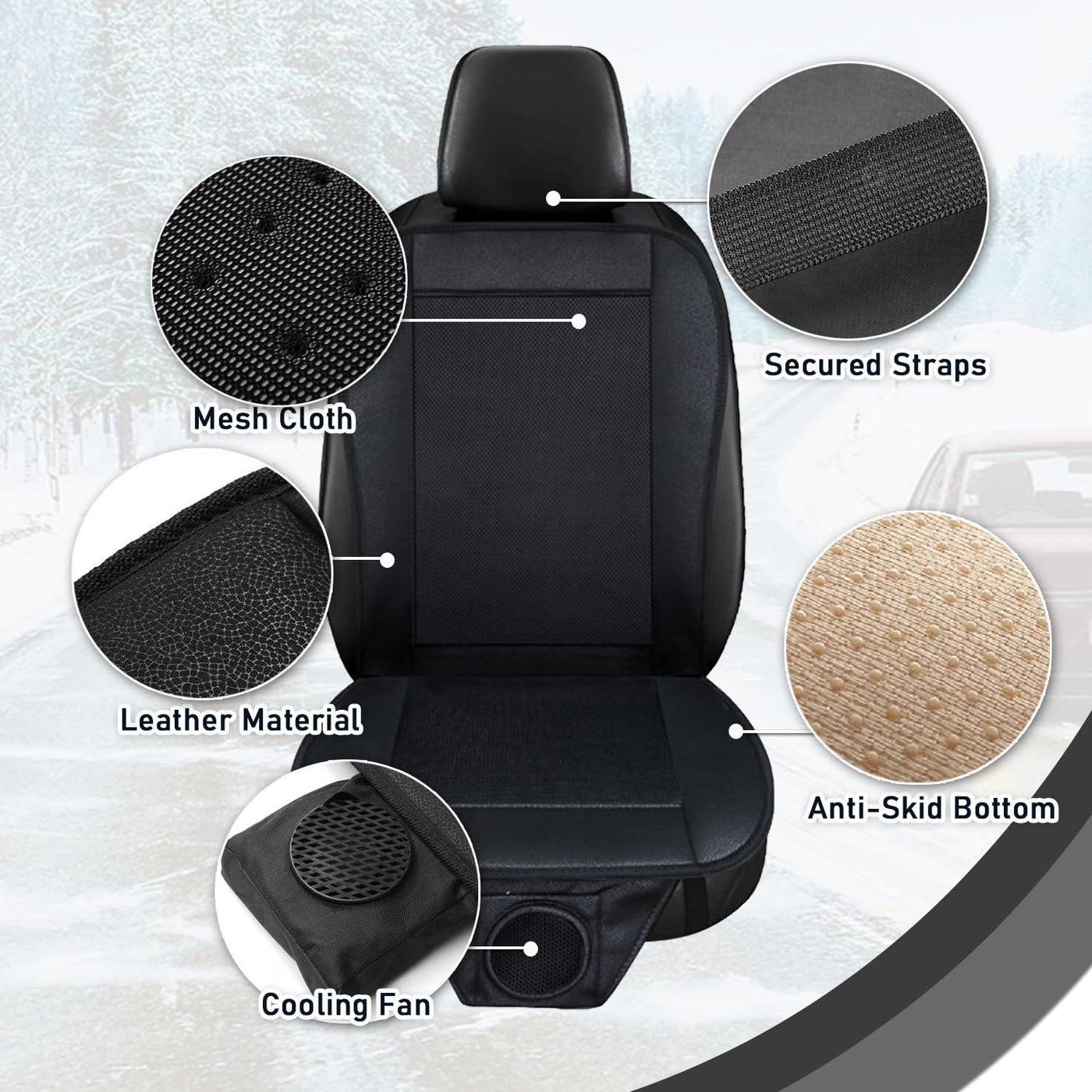 Zone Tech Cooling Car Seat Cushion - Black Automotive Adjustable Temperature Comfortable Cooling Car Seat Cushion (1 Pack)