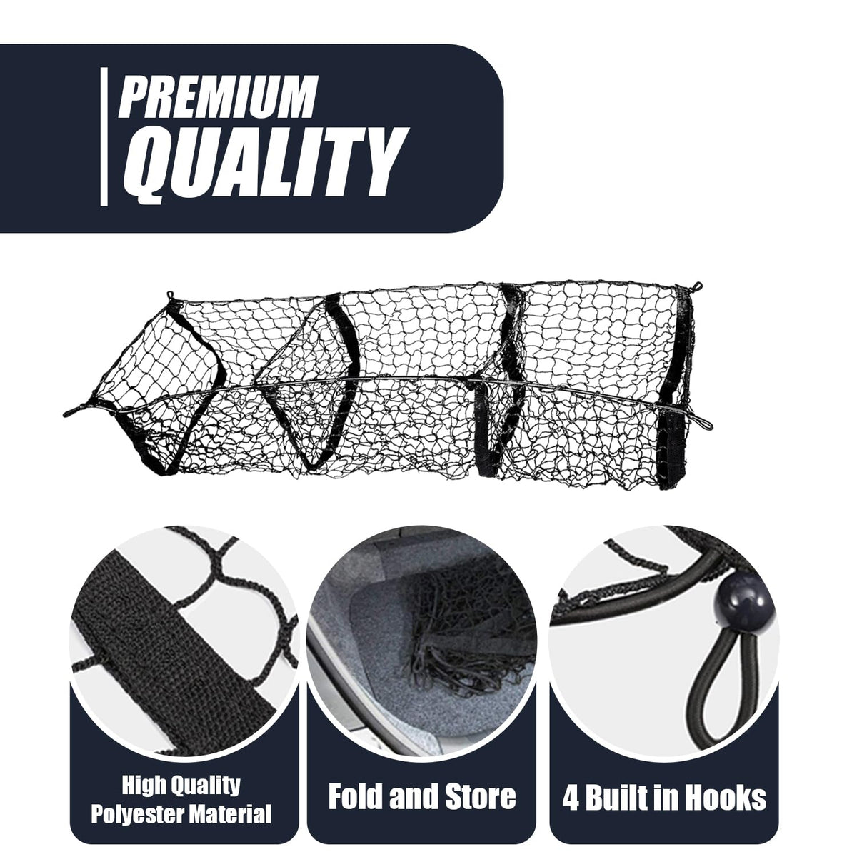 Zone Tech Three Pocket Mesh Trunk Cargo Net Storage Organizer- Premium Quality Black Heavy Duty Black Mesh 3 Pocket Trunk Cargo