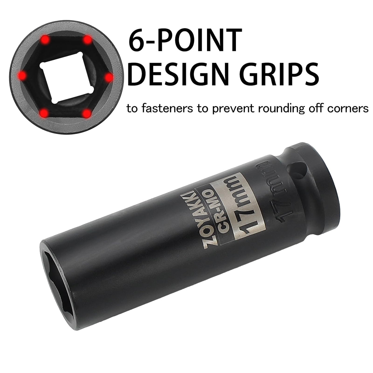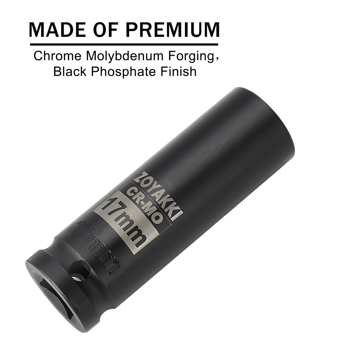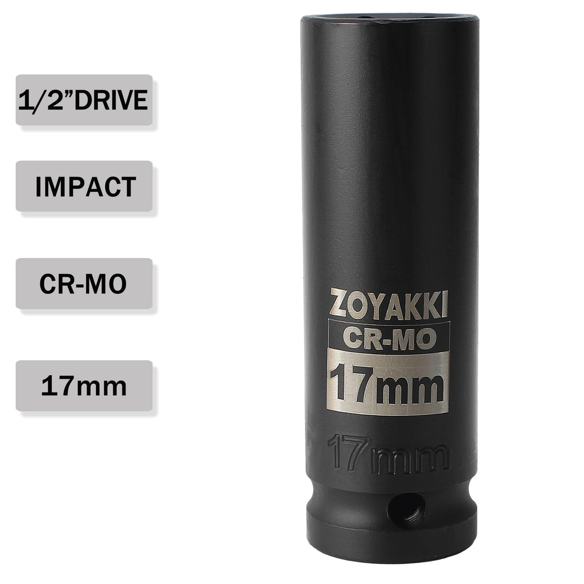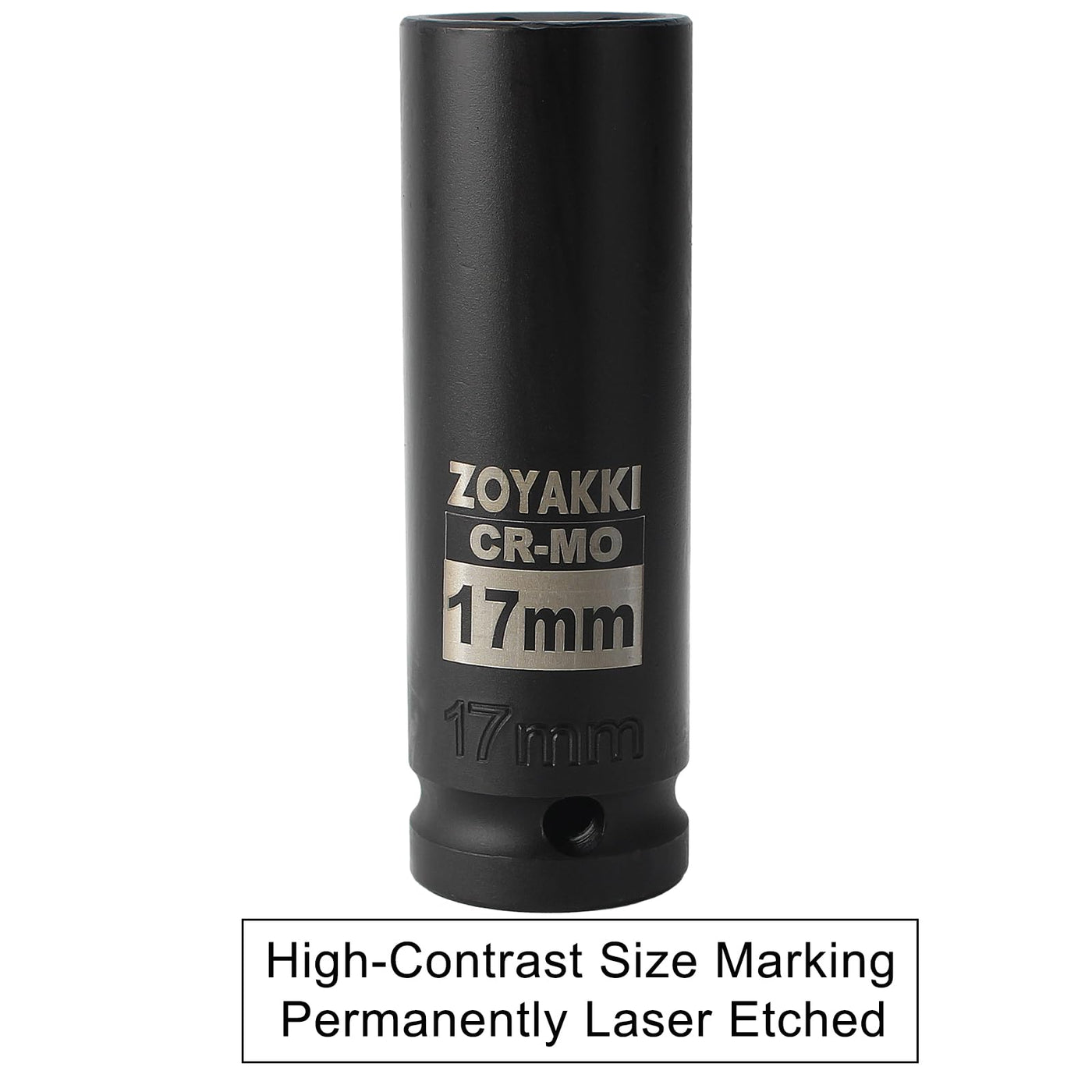 Zoyakki 1/2' Drive X 17 Mm Deep 6 Pt Impact Socket, Cr-Mo, 1/2-Inch Drive 6 Point Axle Nut Socket For Easy Removal Of Axle Shaft Nuts (17Mm)