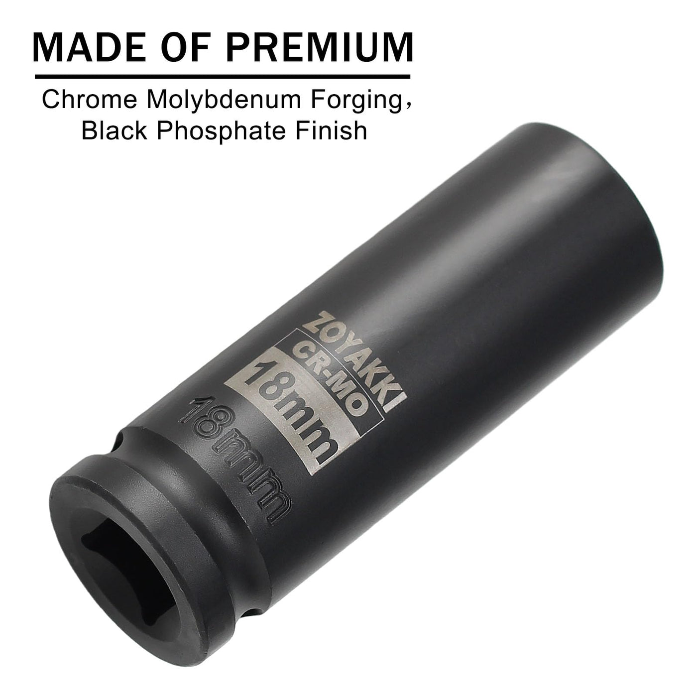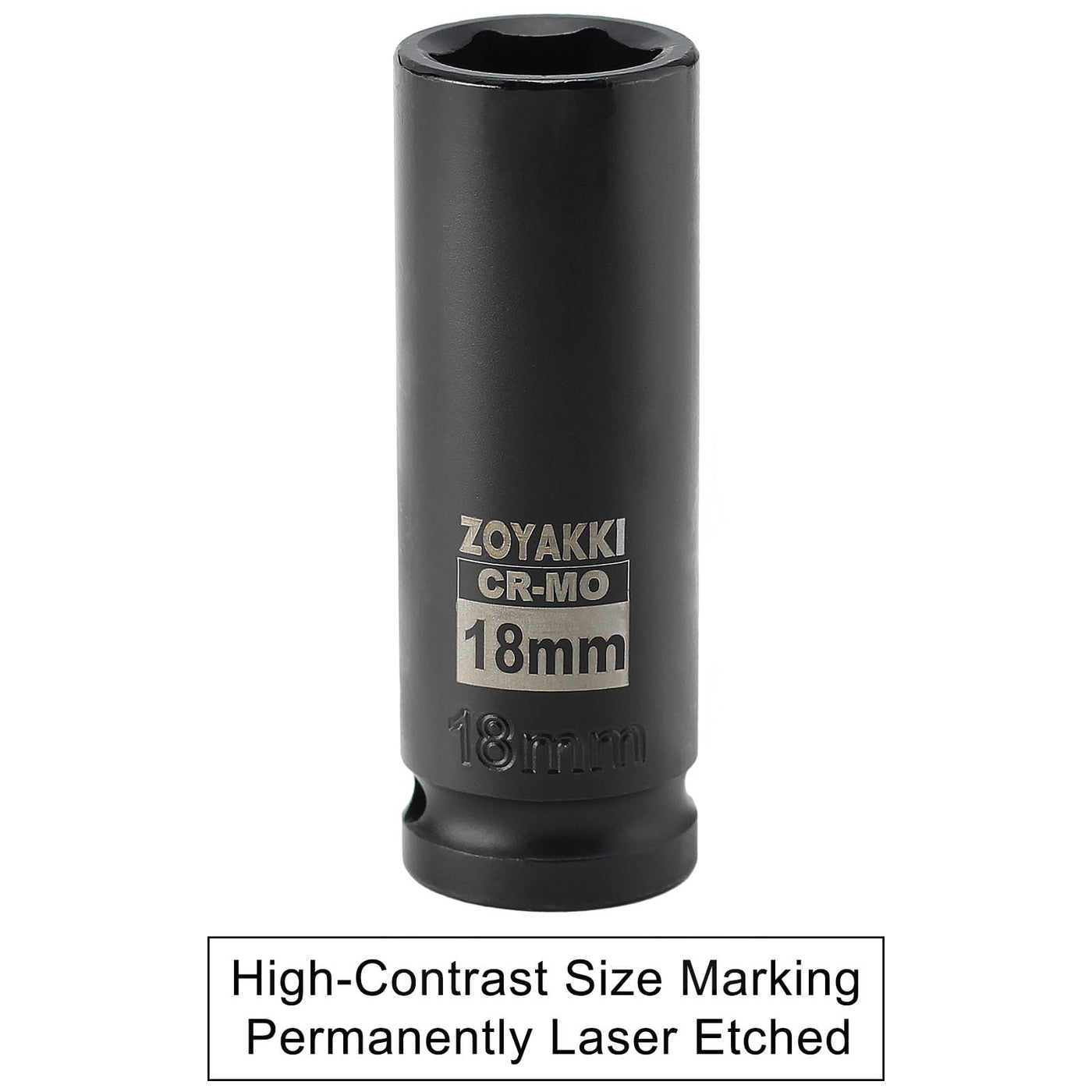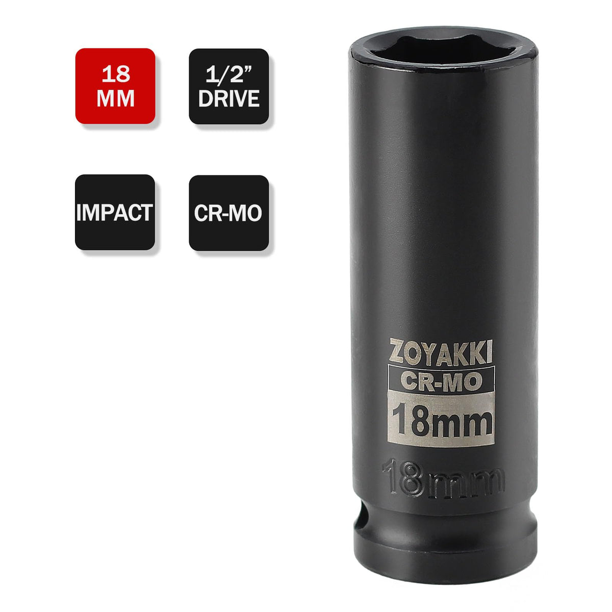 Zoyakki 1/2' Drive X 18 Mm Deep 6 Pt Impact Socket, Cr-Mo, 1/2-Inch Drive 6 Point Axle Nut Socket For Easy Removal Of Axle Shaft Nuts (18Mm)