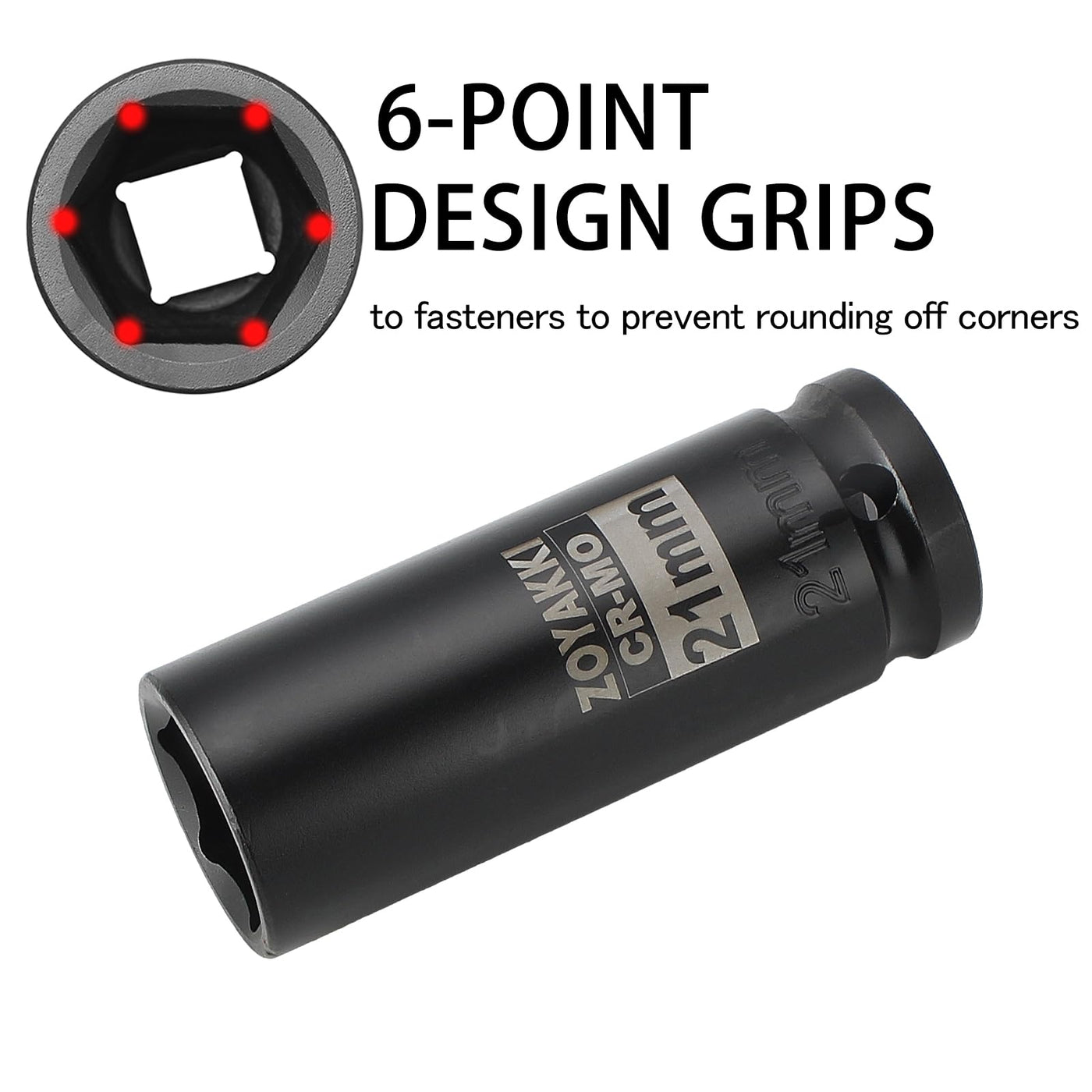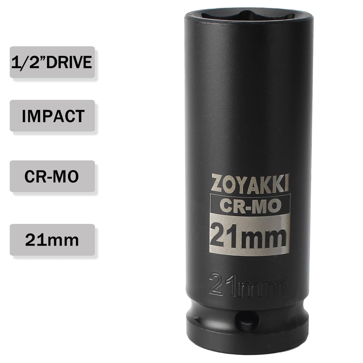 Zoyakki 1/2' Drive X 21 Mm Deep 6 Pt Impact Socket, Cr-Mo, 1/2-Inch Drive 6 Point Axle Nut Socket For Easy Removal Of Axle Shaft Nuts (21Mm)