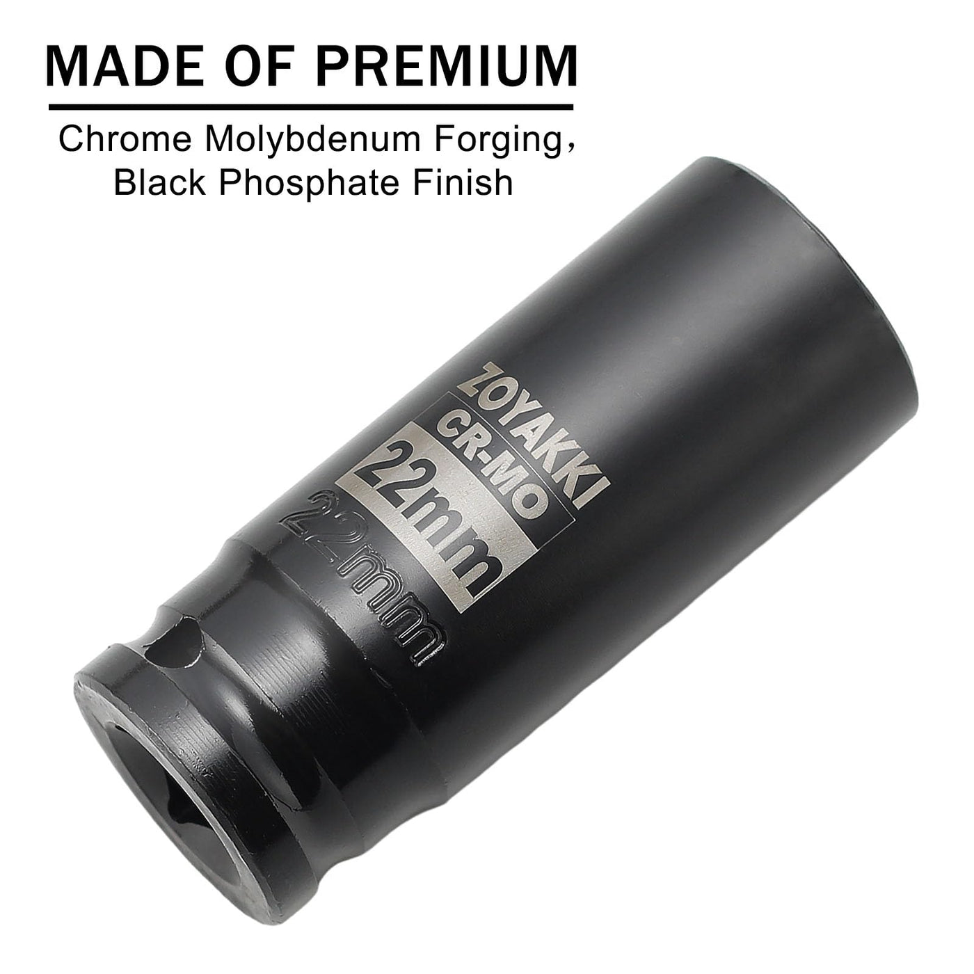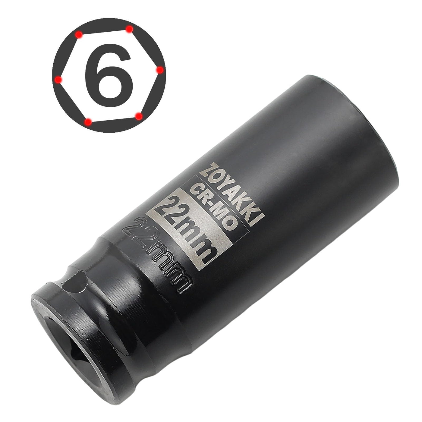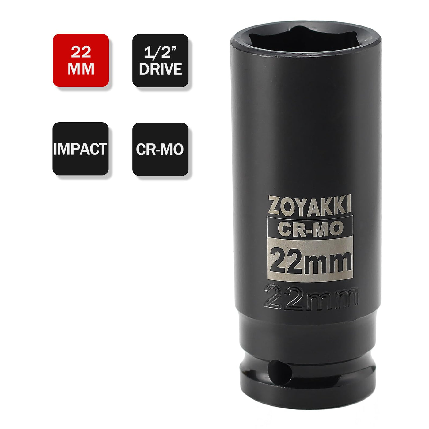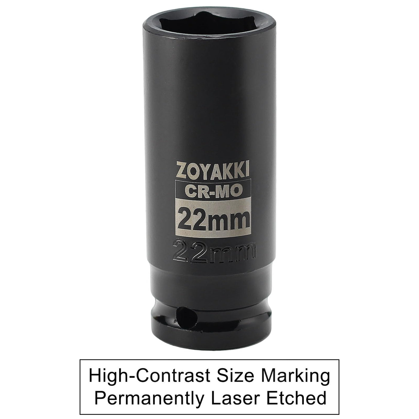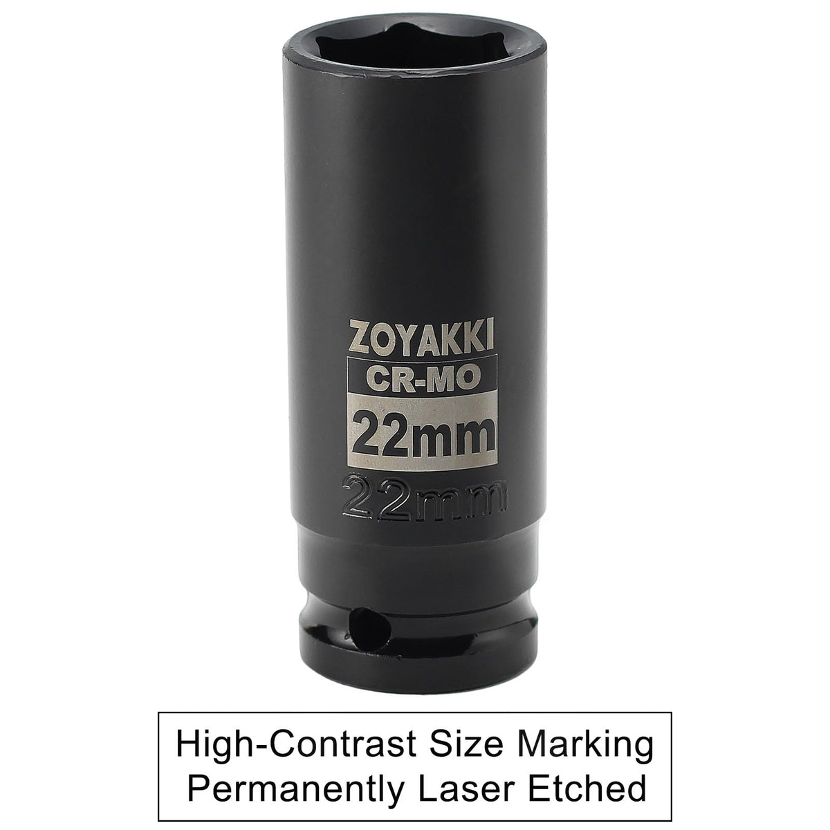 Zoyakki 1/2' Drive X 22 Mm Deep 6 Pt Impact Socket, Cr-Mo, 1/2-Inch Drive 6 Point Axle Nut Socket For Easy Removal Of Axle Shaft Nuts (22Mm)