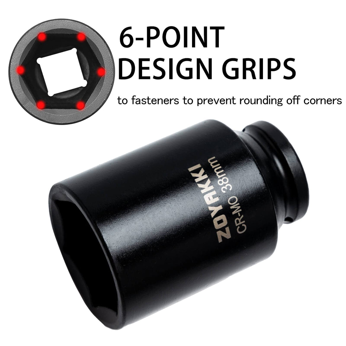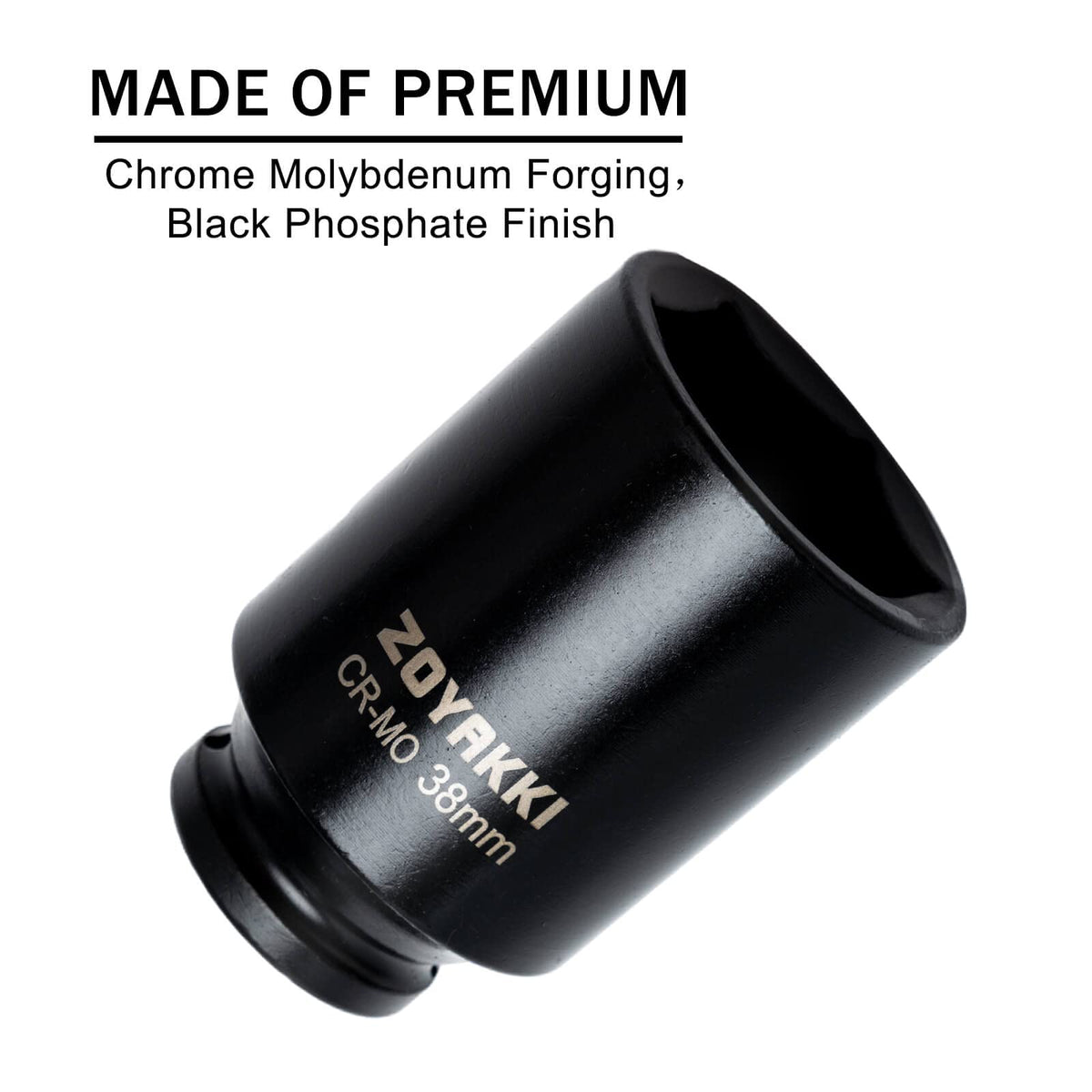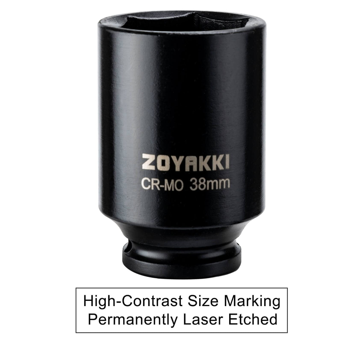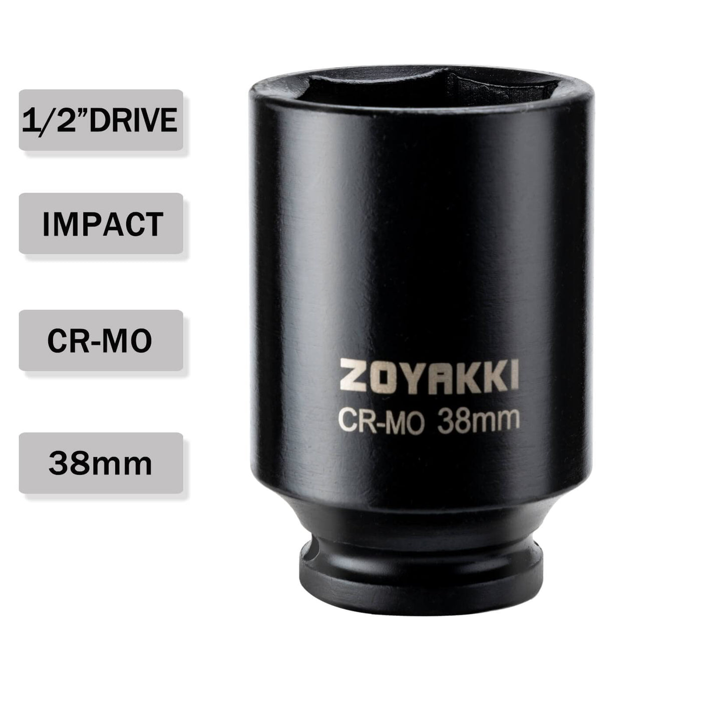 Zoyakki 1/2' Drive X 38 Mm Deep 6 Pt Impact Socket, Cr-Mo, 1/2-Inch Drive 6 Point Axle Nut Socket For Easy Removal Of Axle Shaft Nuts (38Mm)