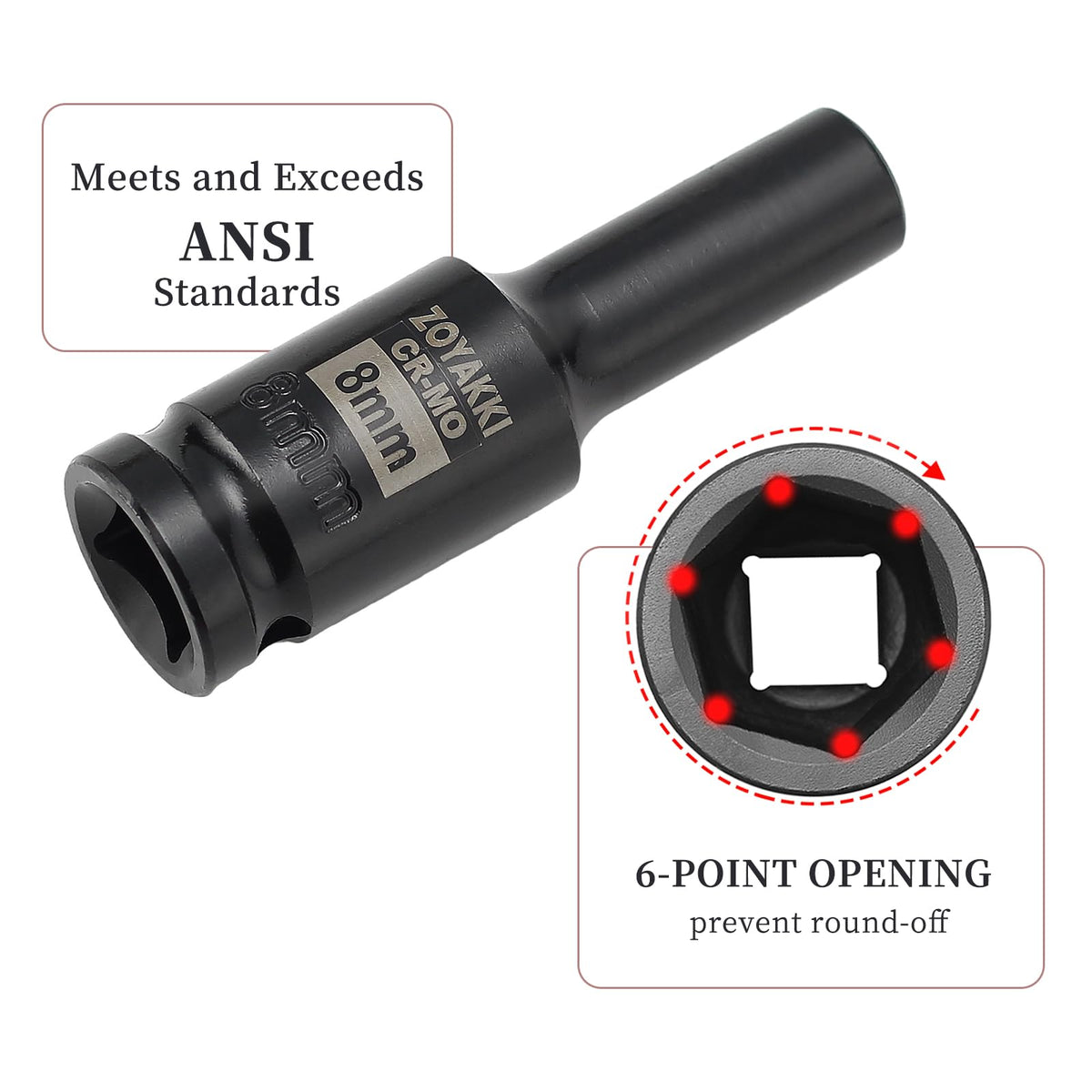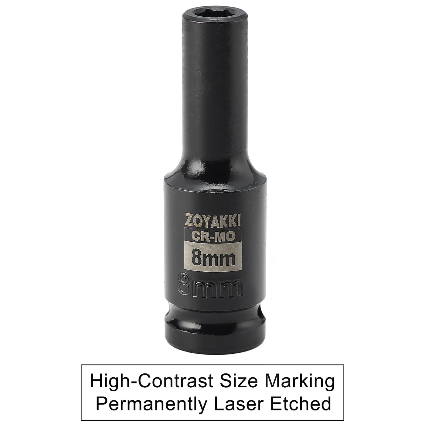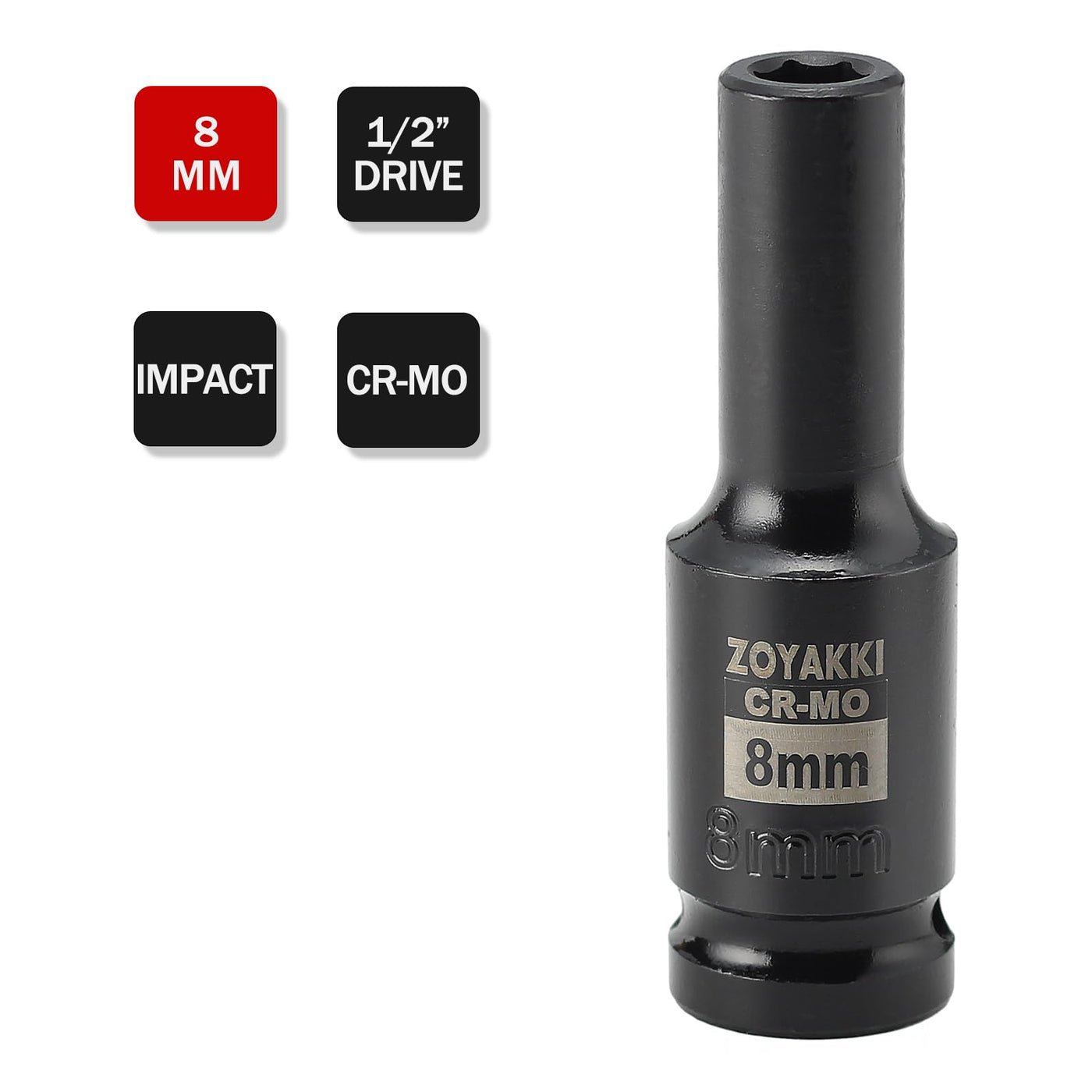Zoyakki 1/2' Drive X 8 Mm Deep 6 Pt Impact Socket, Cr-Mo, 1/2-Inch Drive 6 Point Axle Nut Socket For Easy Removal Of Axle Shaft Nuts (8Mm)