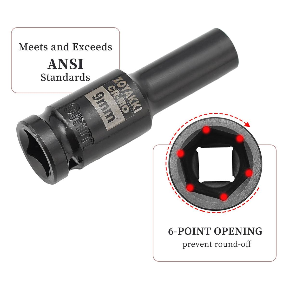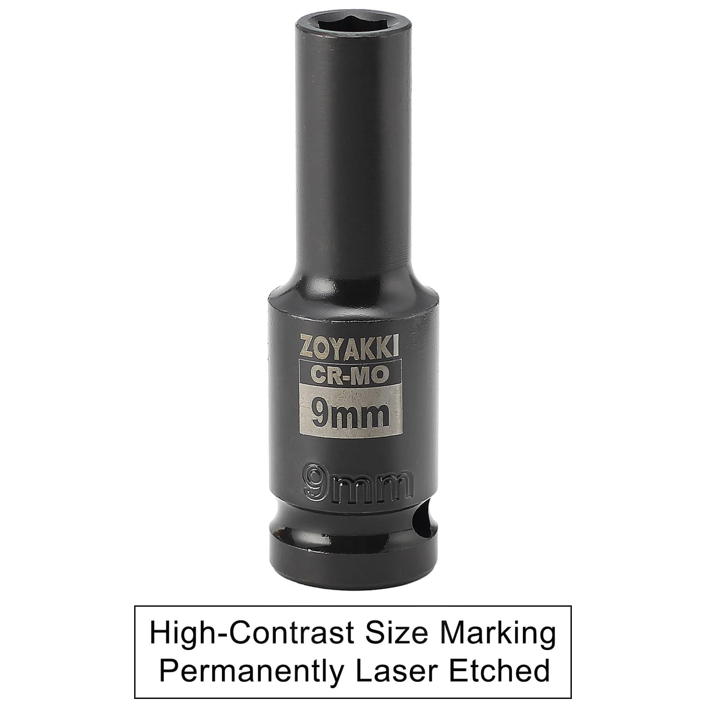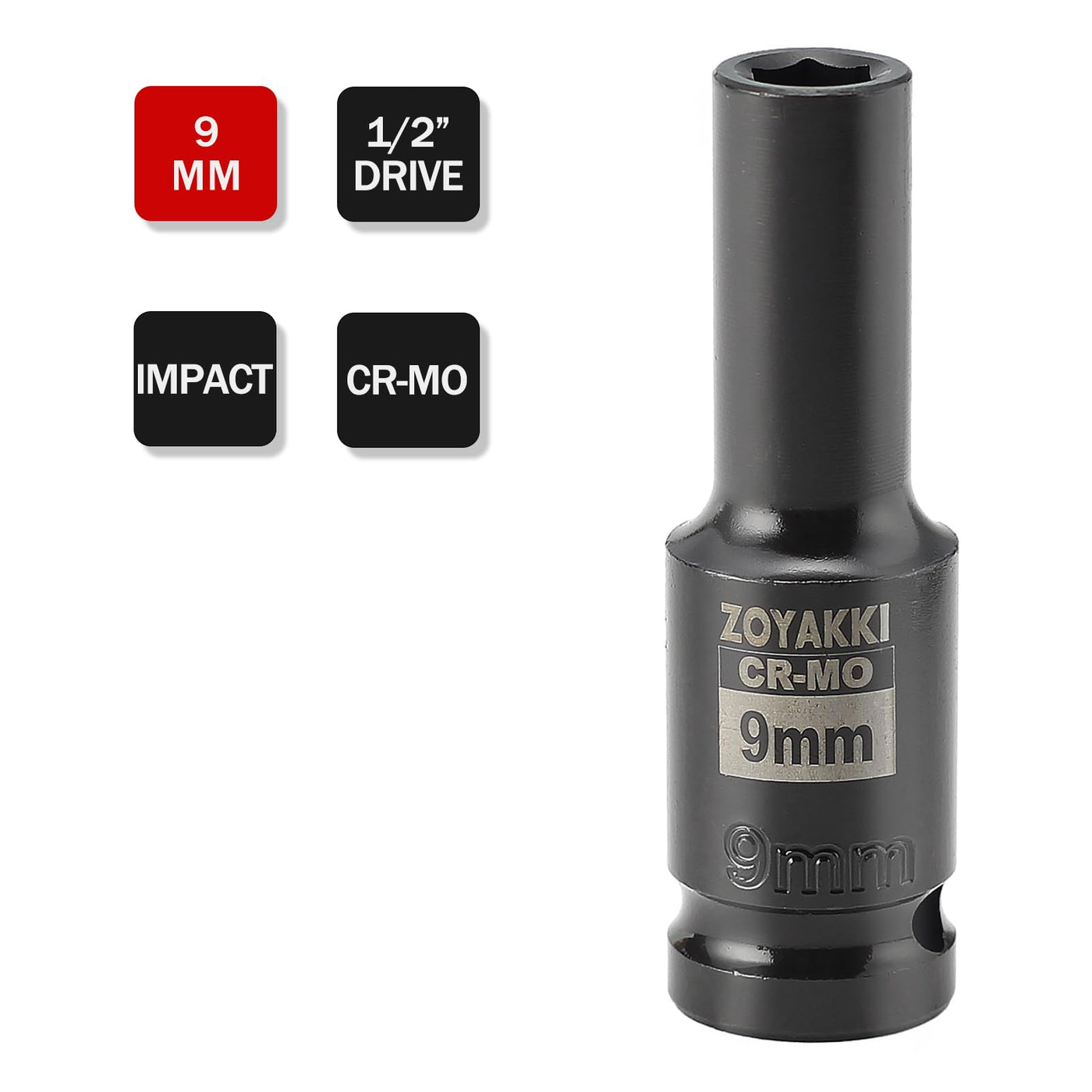 Zoyakki 1/2' Drive X 9 Mm Deep 6 Pt Impact Socket, Cr-Mo, 1/2-Inch Drive 6 Point Axle Nut Socket For Easy Removal Of Axle Shaft Nuts (9Mm)