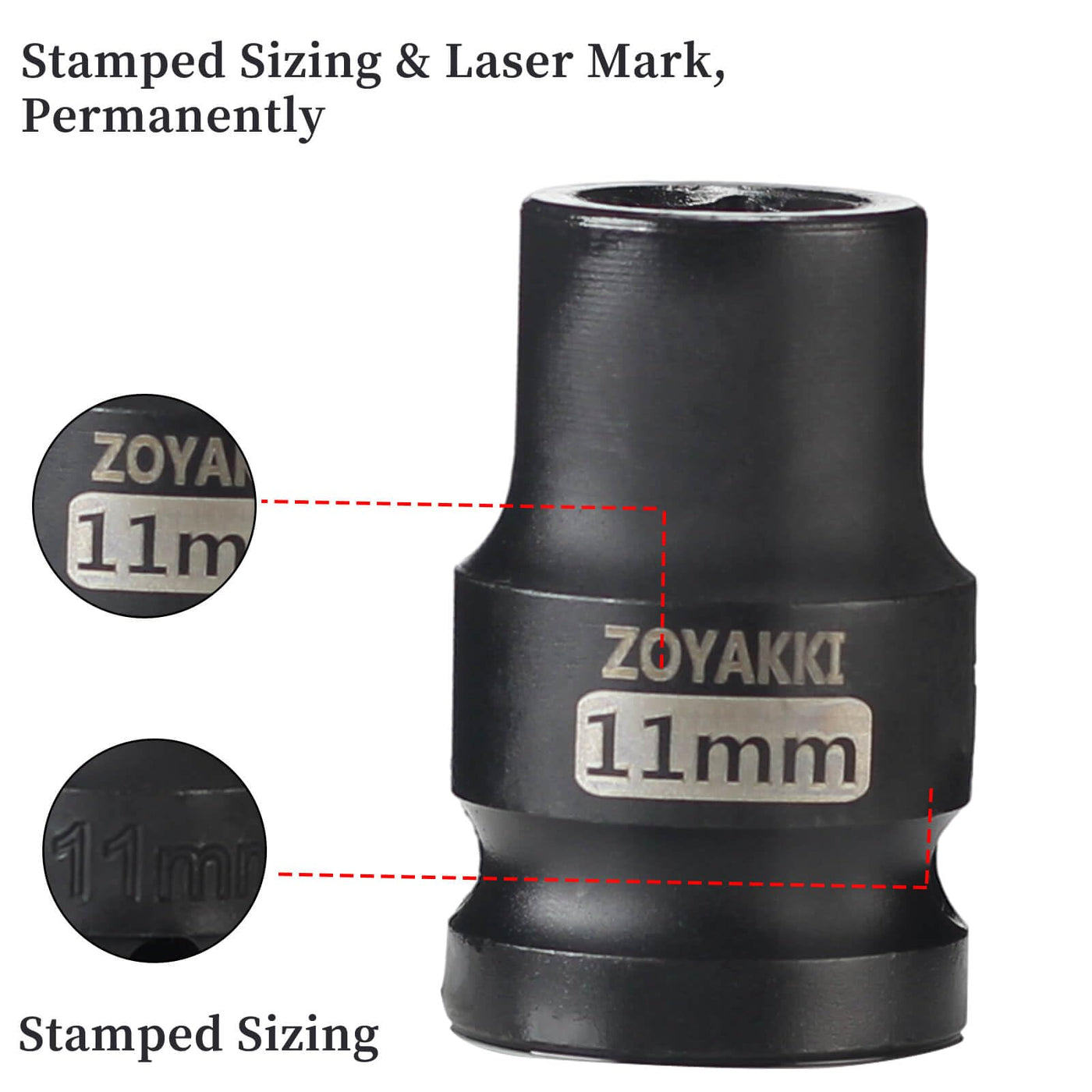Zoyakki Shallow Impact Socket, Sae, 1/2 Inch Drive, 6 Point, Metric X 11 Mm