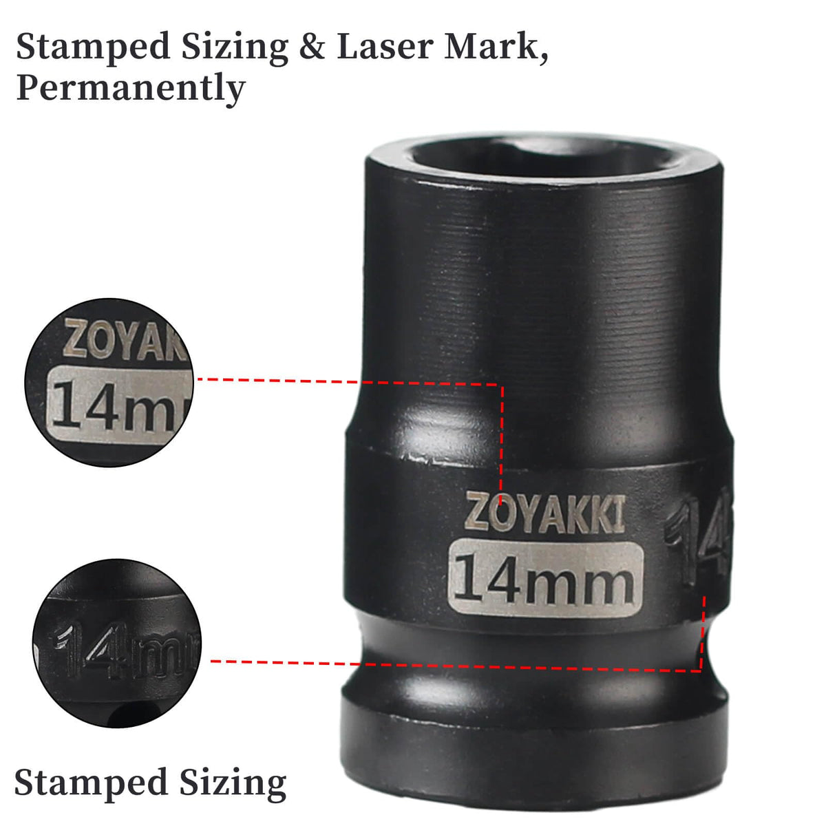 Zoyakki Shallow Impact Socket, Sae, 1/2 Inch Drive, 6 Point, Metric X 14 Mm