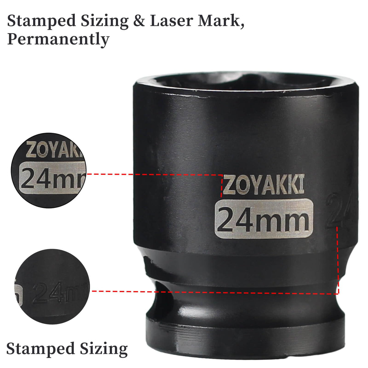 Zoyakki Shallow Impact Socket, Sae, 1/2 Inch Drive, 6 Point, Metric X 24 Mm