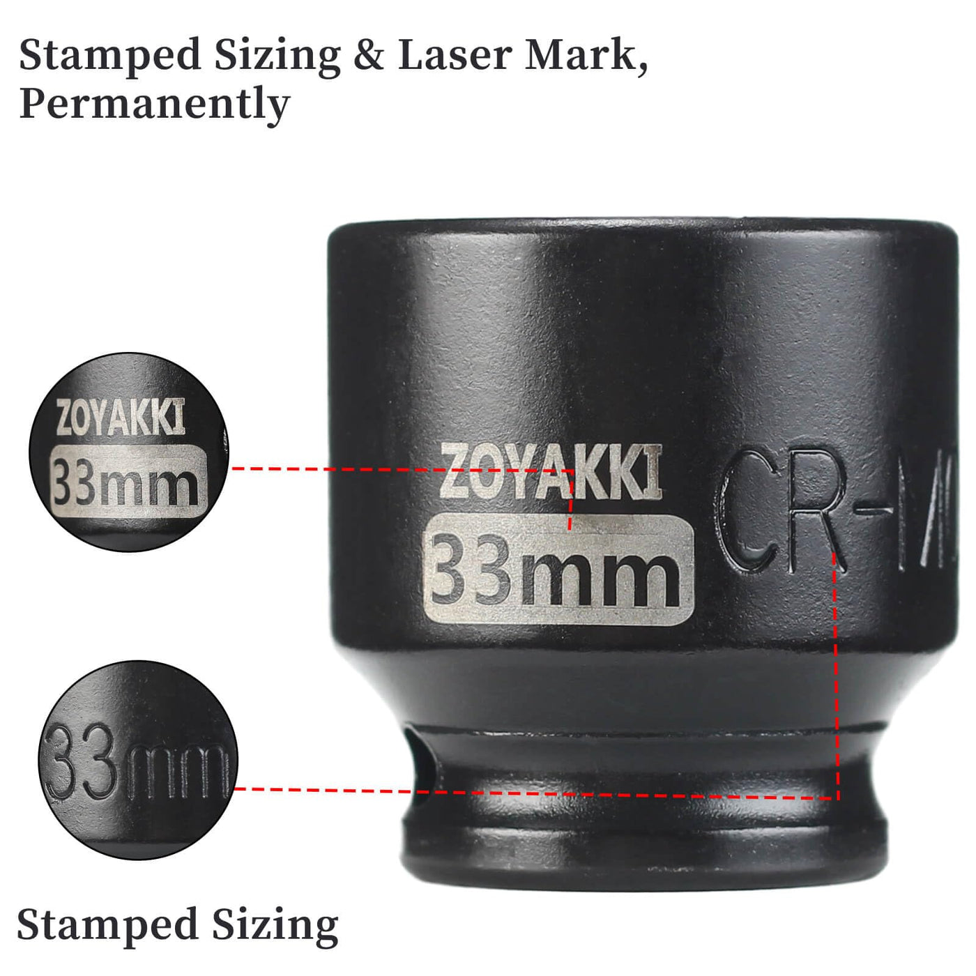 Q: What is the size of the ZOYAKKI Shallow Impact Socket?A: The ZOYAKKI Shallow Impact Socket is designed with a size of 33mm, making it ideal for various automotive and mechanical tasks.