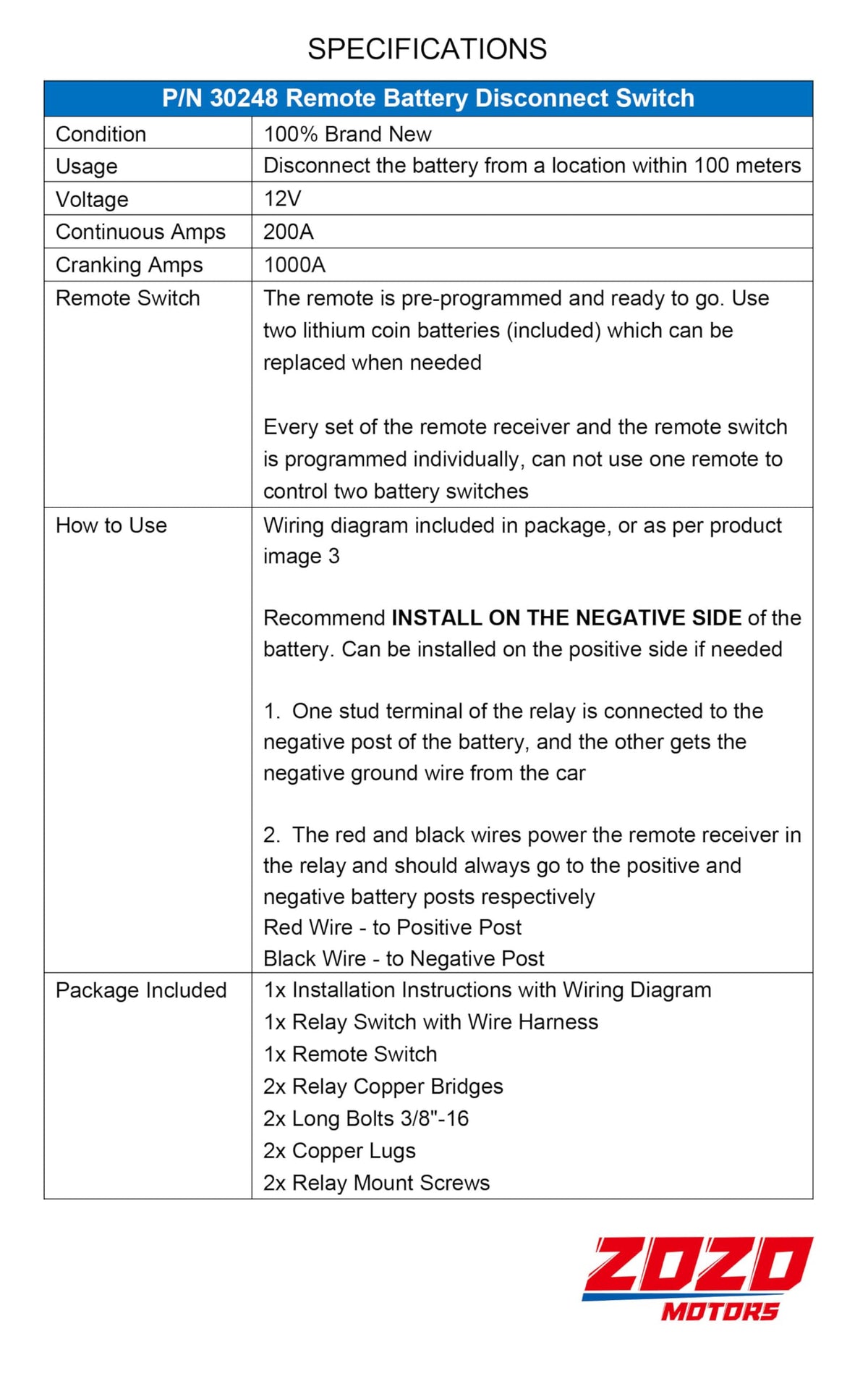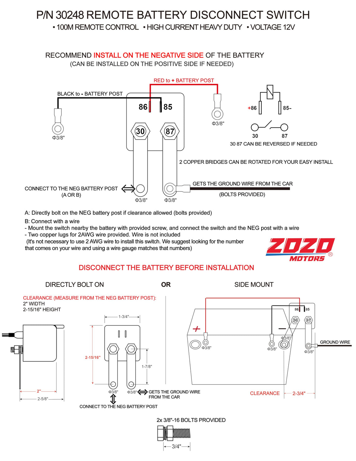 Zozomotors 3/8' Side Post Remote Battery Disconnect Switch 12V Battery Kill Switch For Car Truck Utv Atv Marine Anti Theft Battery Cut/Shut Off Switch, 200/1000 Amp Heavy Duty, On/Off