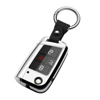 Zspdacc Compatible With Volkswagen Foldable Key Fob Cover Silver Tpu Protector Case Car Key Chain Holder