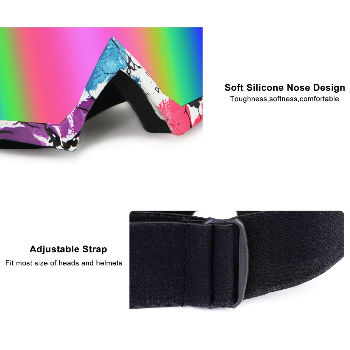 Application: The motocross goggles use for dirt bike,motorcycle, motocross,mtb,riding,offroad, racing,atv/utv,skiing,outdoor powersport ect. | Adjustable Strap: Adjustable motorcycle goggle's strap fit different size of youth,adult,women,men's head or helmet. | Anti Scratch Lens: PC bendable lens are anti-scratched,clear vistion lens,wind proof,dust proof | Durable Bendable Frame: ABS frame dirtbike goggles are bendable. | Breathable Foam: Breathable foam of atv goggles,comfortable to fit your face.
