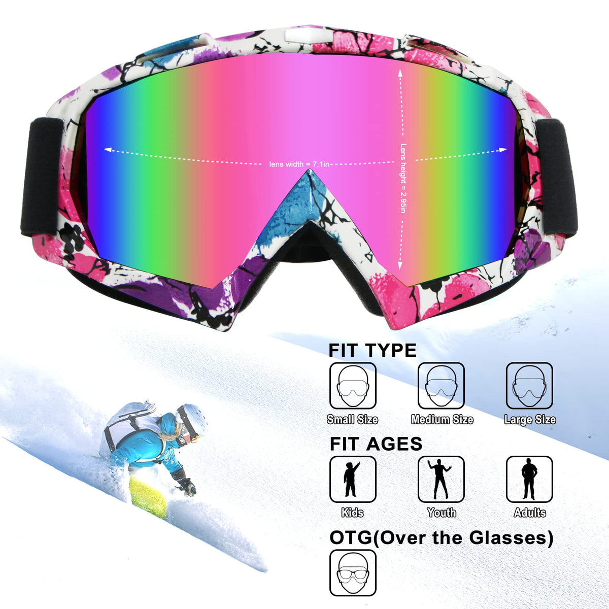Zukmi Atv Motocross Dirt Bike Motorcycle Goggles Mx Off Road For Men Women Adult Youth Riding Racing (Flower Frame + Pink Lens)